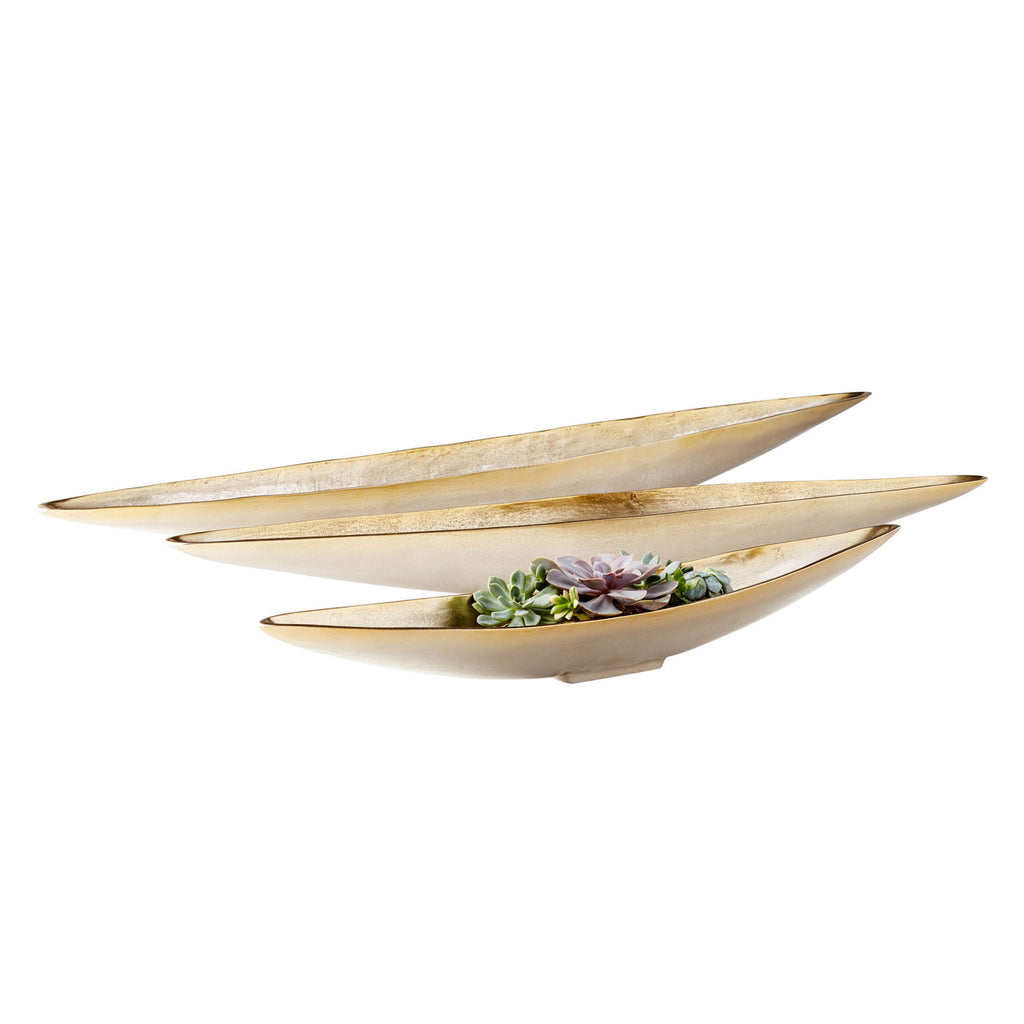Give tabletops and shelves an eclectic boost with a decorative tray from Cyan Design. This unique storage tray décor offers versatility and function while meshing with your distinctive style. Natural shaping and a rich rough nickel and finish, this metal tray is a wonderful way to introduce texture and elegance to any tabletop. Boasting aluminum construction, this oblong tray is a decorative addition that brings beautiful, dimensional flair.