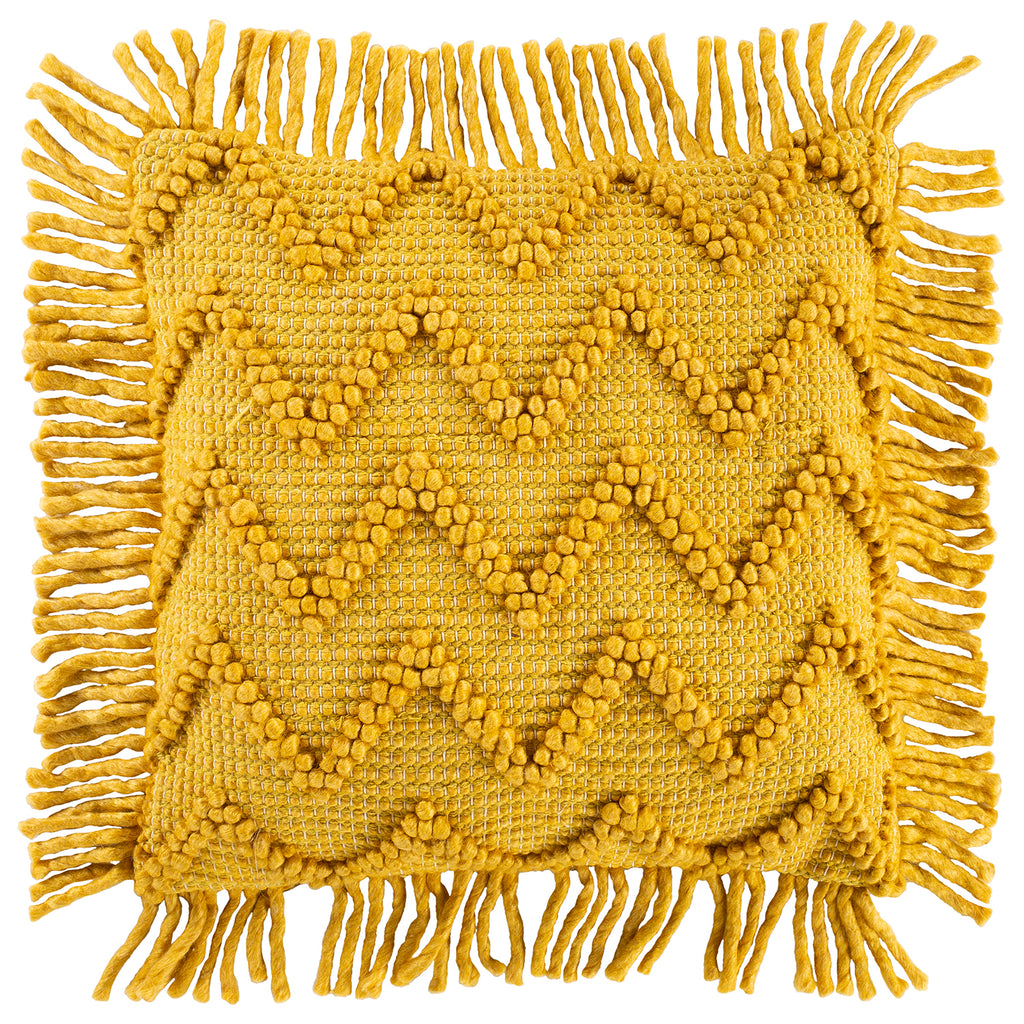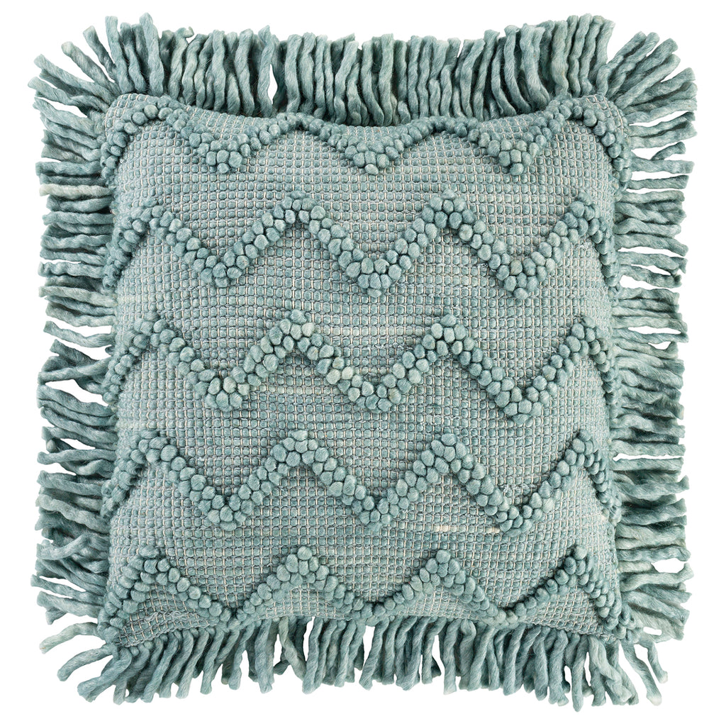 The Dooley Throw Pillow offers an enduring presentation of the modern form that will competently revitalize your decor space. The meticulously woven construction of these pieces boasts durability and will provide natural charm into your decor space. Made with Wool, Cotton, in India, Spot Clean Only, Line Dry.