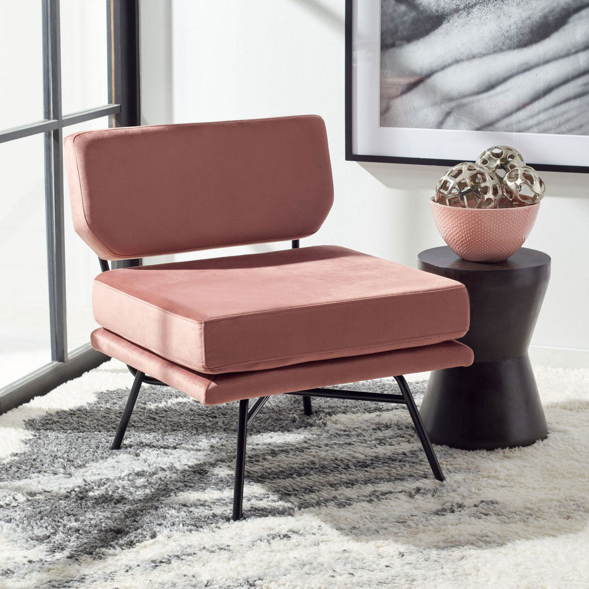 Designed with Mid-Century flair yet thoroughly, utterly modern, this accent chair reflects sophisticated contemporary chic. The velvet is luxuriously soft to the touch, and its low-slung back makes a stunning stylish statement.