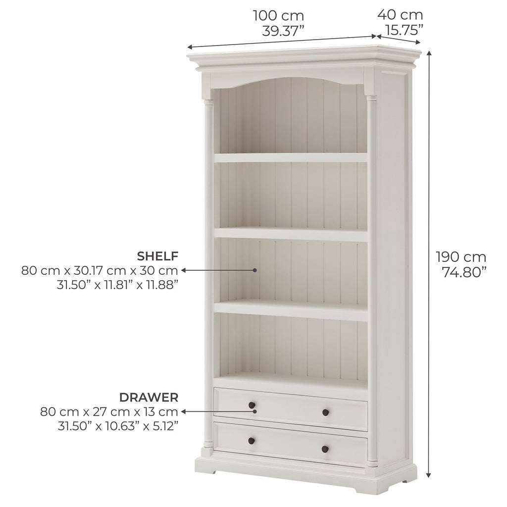 Dunwich is a design family for the most elegant of homes. The beautifully curved profiling of the Dunwich collection add depth and character to the room of choice. The rustic design paired with a classic white finish effortlessly make these timeless pieces the centrepieces. From bedrooms to living rooms, a bookcase is a familiar piece that brings instant character and structure to a space. This solid mahogany piece can take an impressive amount of weight but don’t feel obliged to fill it to the brim, a few books to the left and a few to the right will give the tongue and groove back panel a chance to shine.