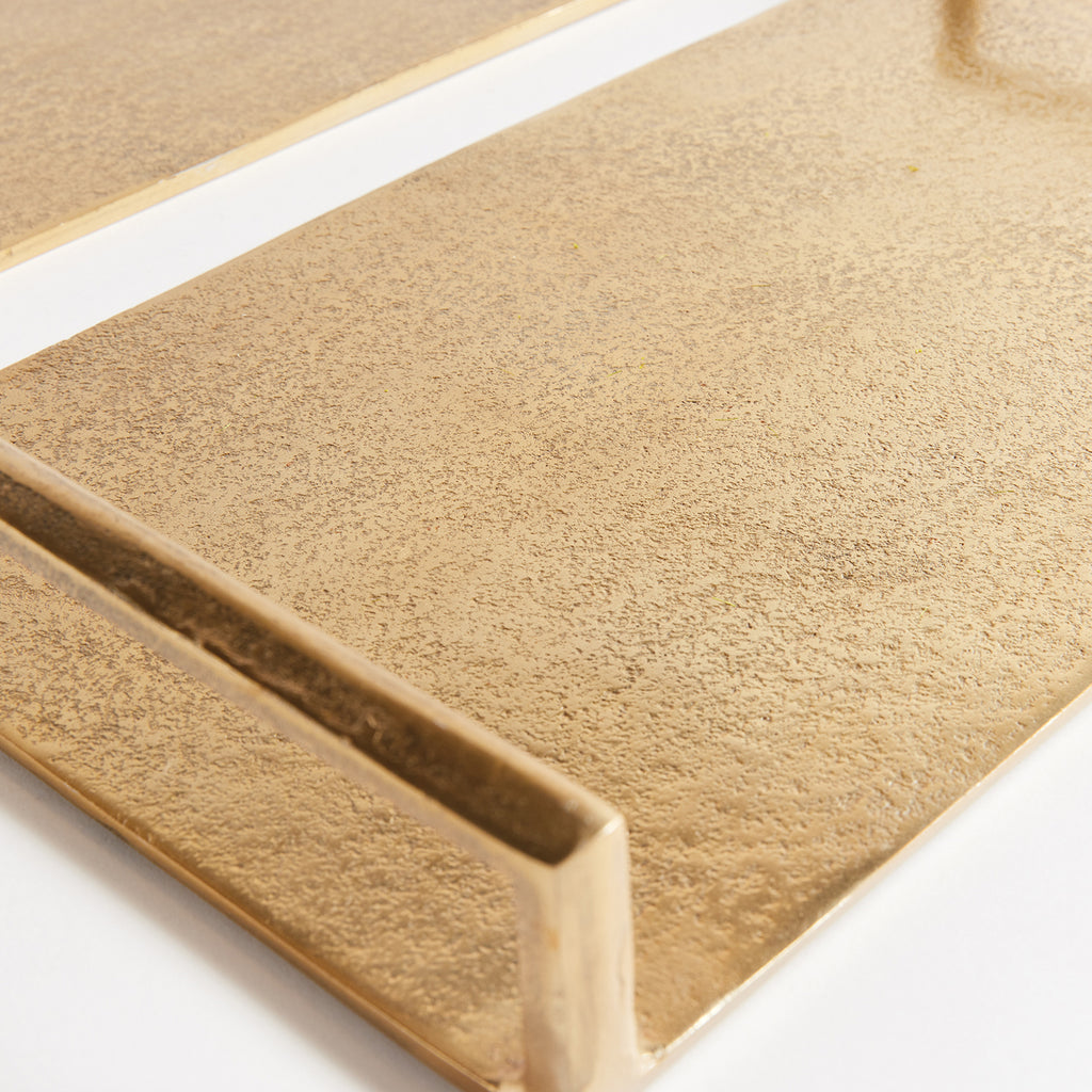 This set of cast aluminum trays are a beautiful way to display a special accent, vase or candleholders. Substantial in size, and full of rich texture, they're also lovely all on their own.
