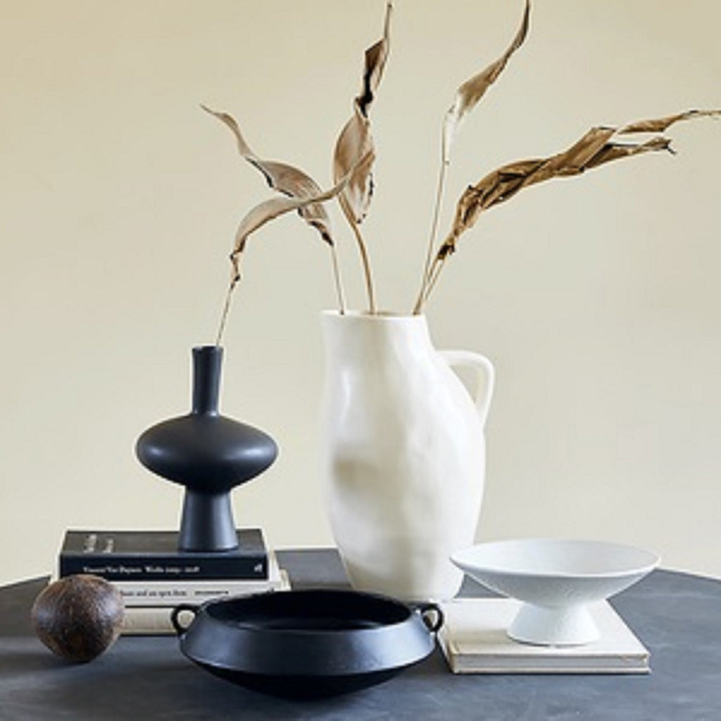 What used to be a vessel to carry water from the river into the village has now become a thing of beauty, of decorative value. The evolution of mankind, in balance with nature, has made the Elsmere Pitcher possible. Handmade of earthenware in sunny Portugal, this matt white vase is a statement piece in every sense of the way.