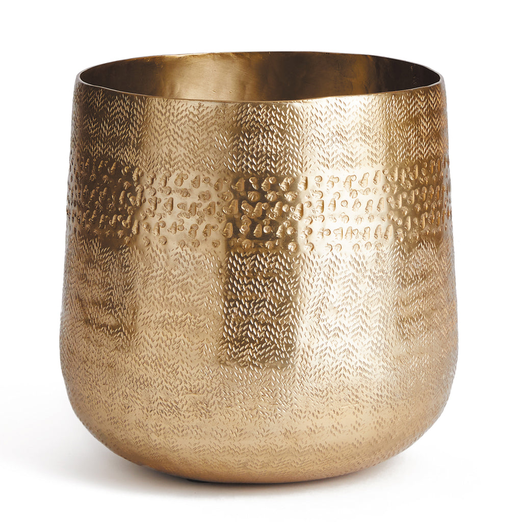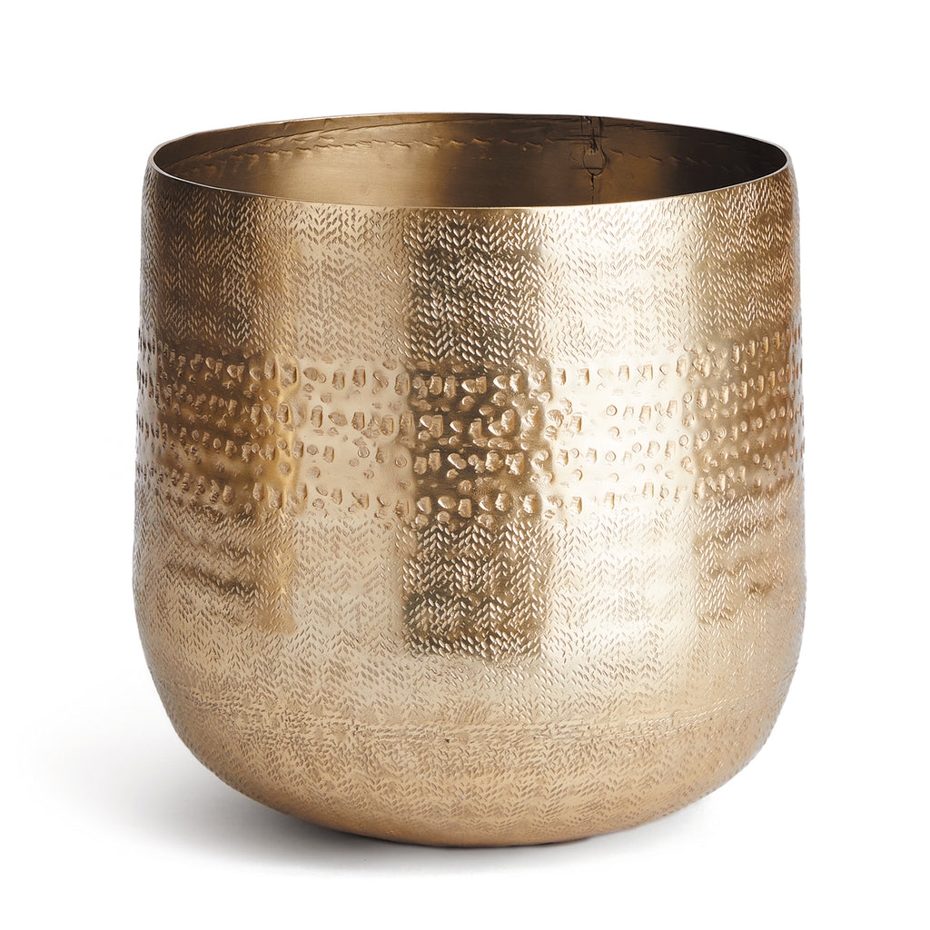 Emberlynn is formed from a thin sheet of metal, trimmed and textured to perfection. This beautiful Cachepot is sure to suit your most prized houseplant- or simply beautiful as is.