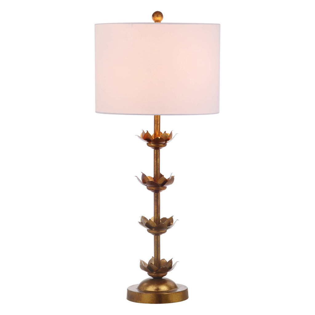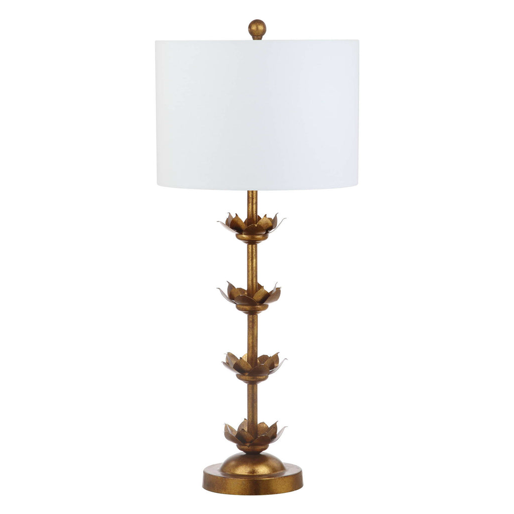 Designed for the gracious living room, finely sculpted leaves adorn this Eminence leaf table lamp from top to bottom. Inspired by fine artwork, its decadent antique gold leaf finish ensures each detail is illuminated. Its crisp off-white shade is complementary.
