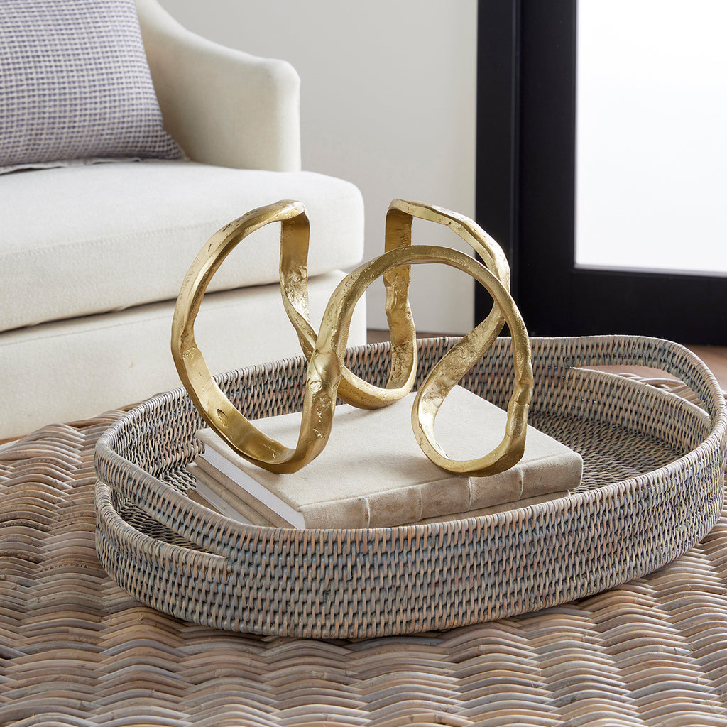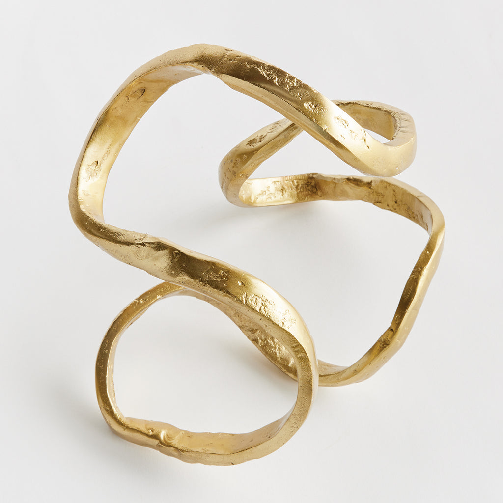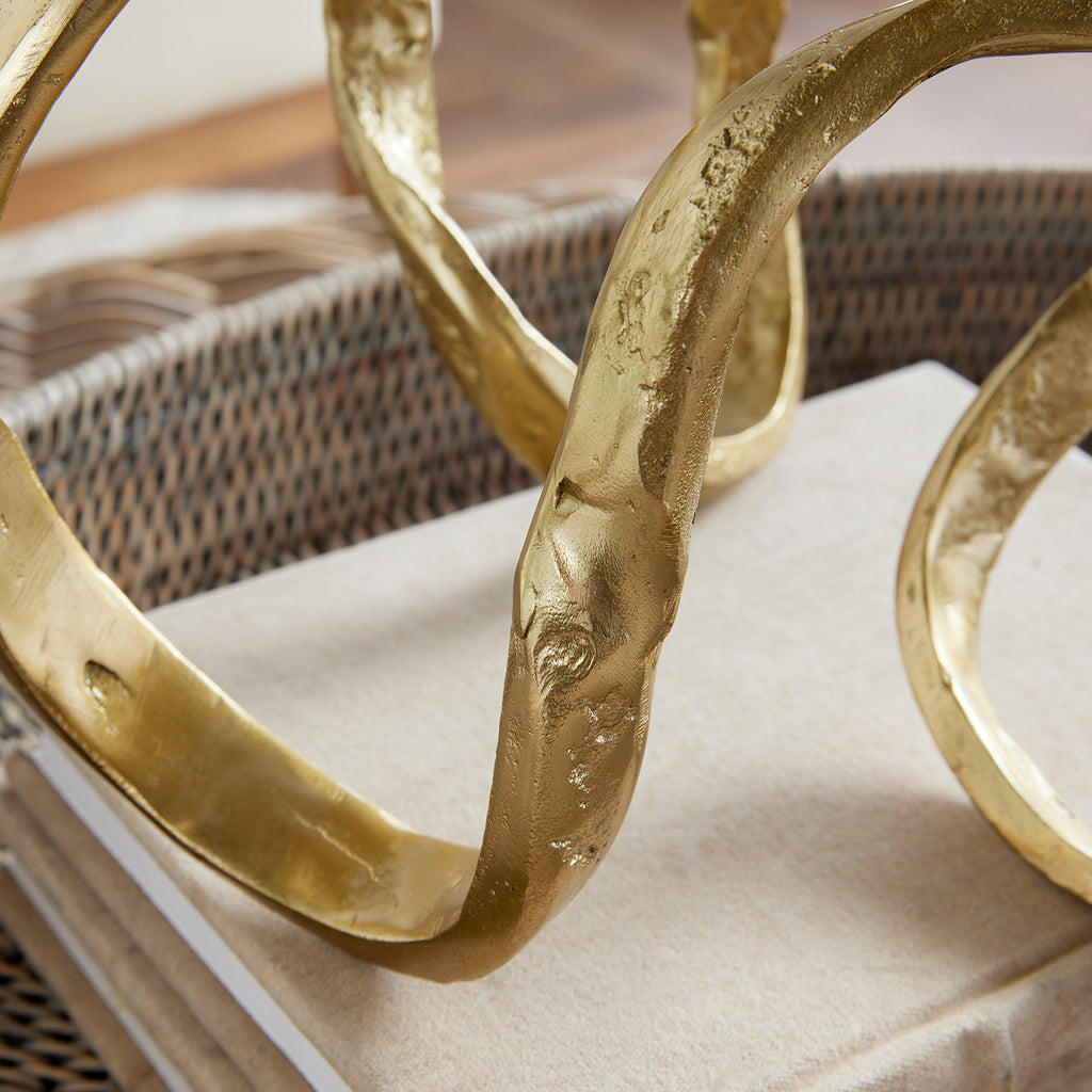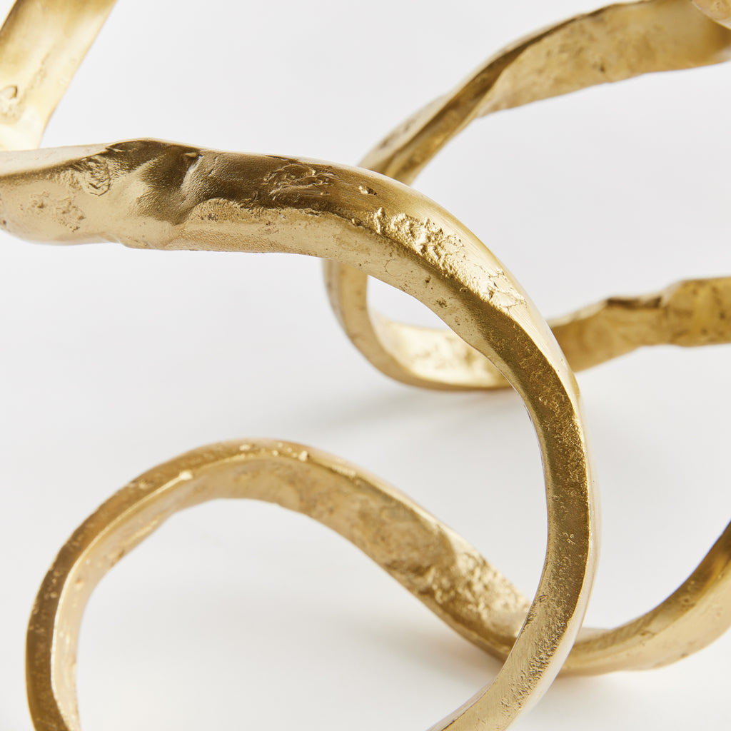 A 3-dimensional modern interpretation of the scribble, this sculpture is inherently organic. Made of solid aluminum and finished in a light gold, a unique accent for the contemporary space.