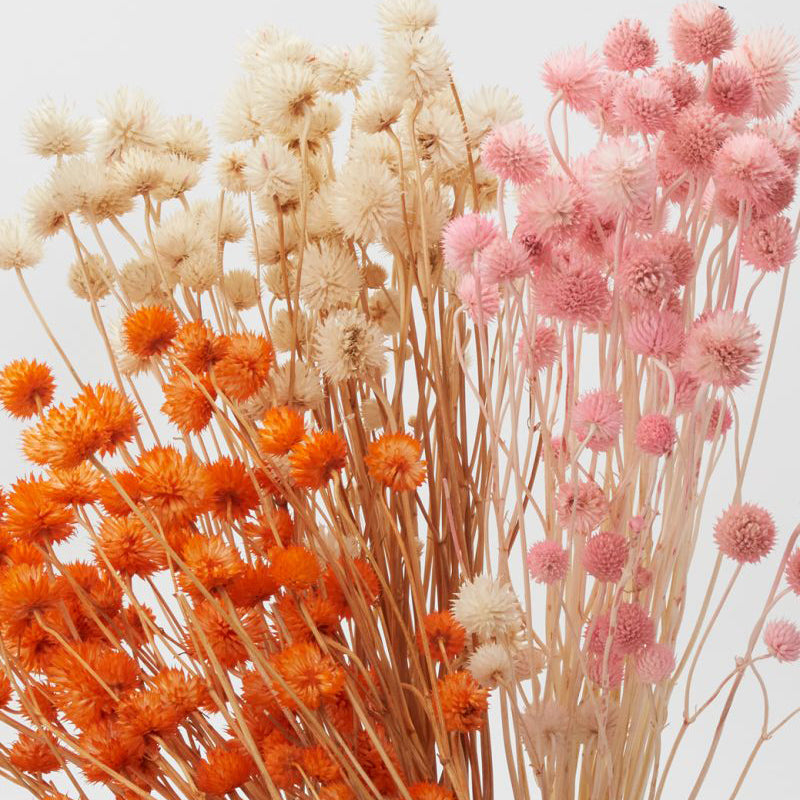 Create whimsical, botanical bouquets with preserved florals, like the Dried Eryngium. Commonly known as Sea Holly or thistle, this collection comes with an average stem count of 30, but could range between 20-40. Featuring sturdy stems, spiny, cone-shaped flowers & a durable dried style bleached in off-white tones (expect some color variation), these textured, neutral pieces add a playful element to any floral design.