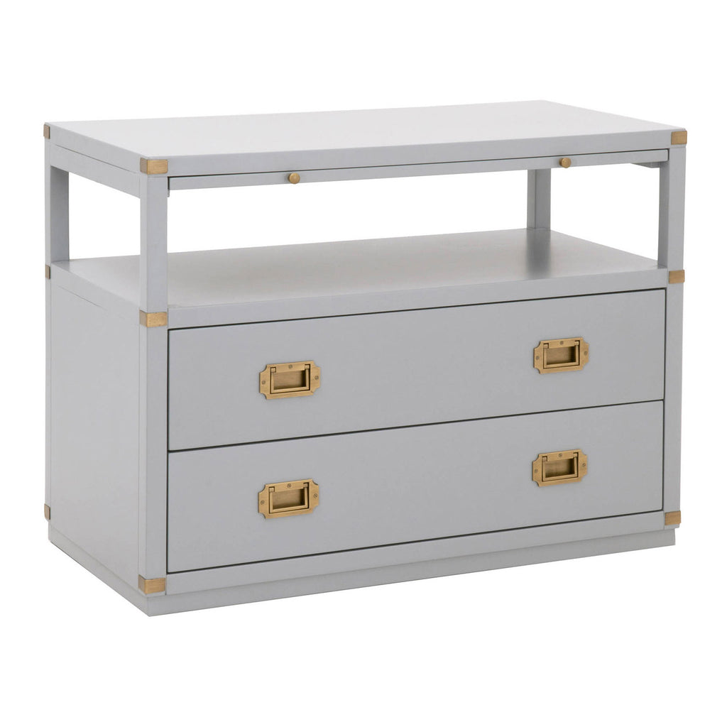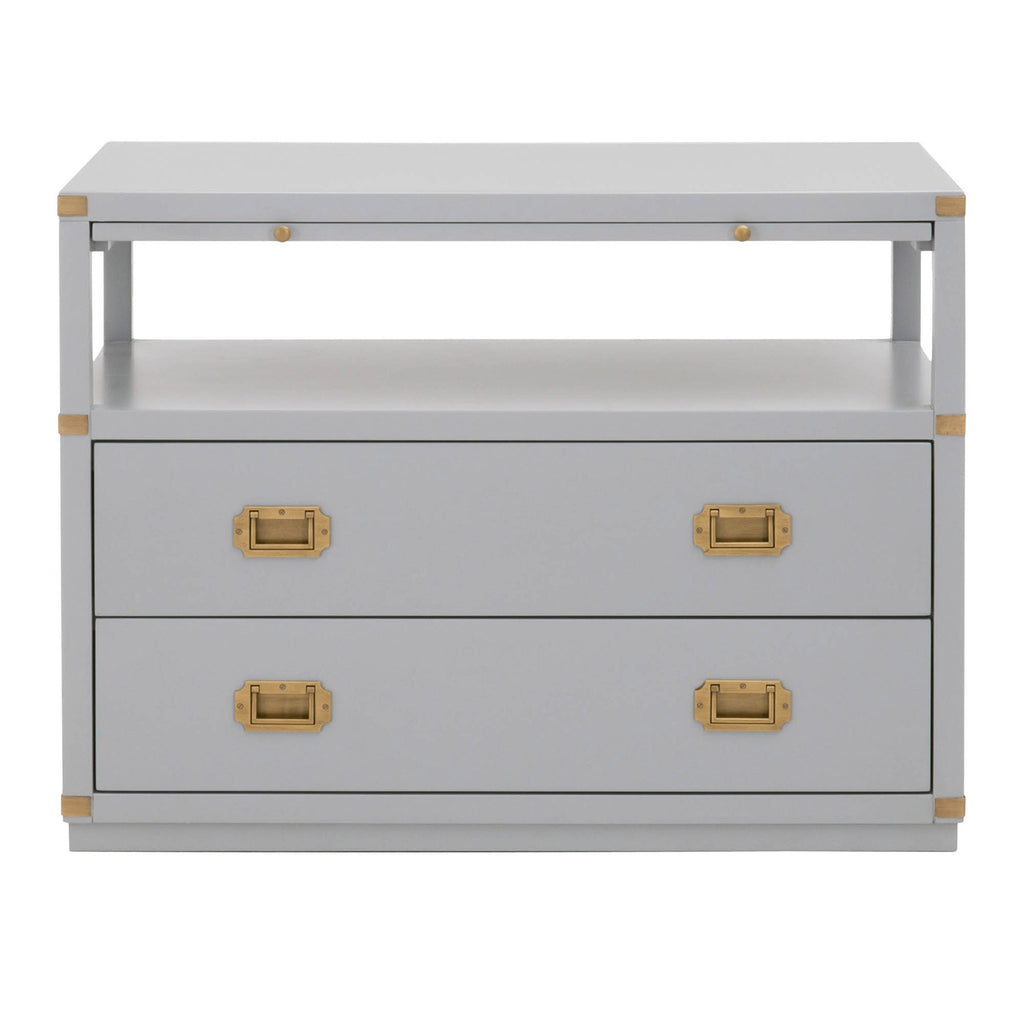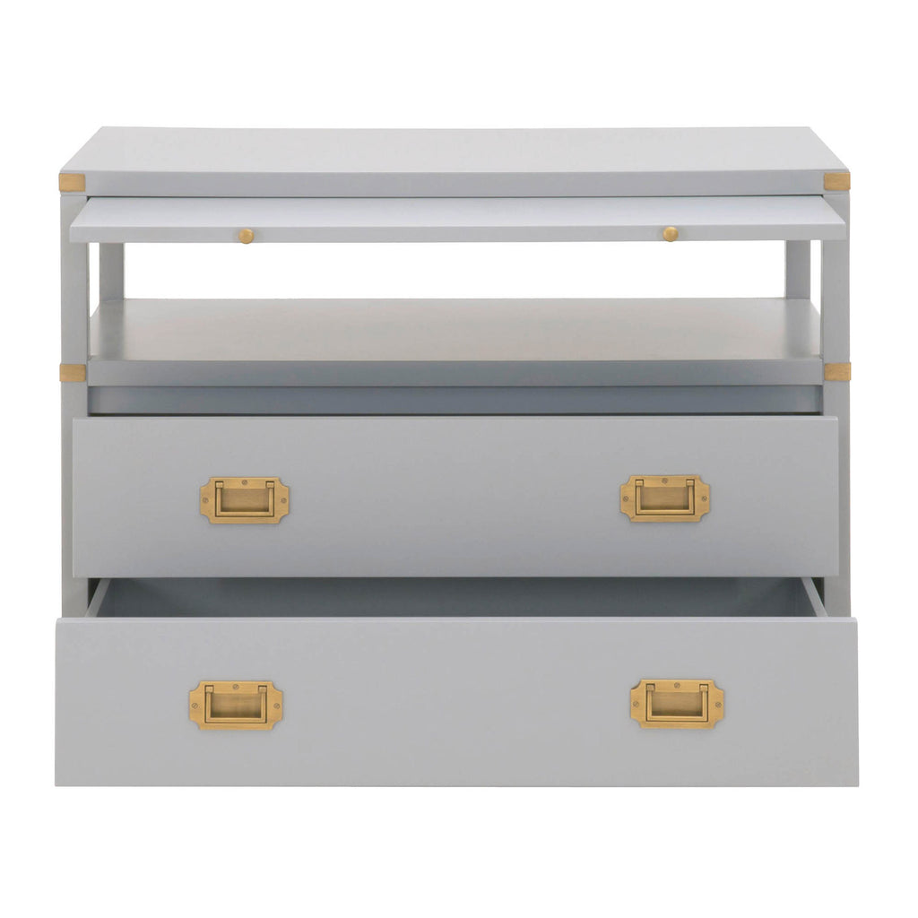 A sophisticated nightstand with a modern flare. The Bradley 2-drawer nightstand is constructed with two large storage drawers, storage shelf and pull-out tray. This bedside table has plenty of space to store all your bedtime necessities such as magazines, books, and much more. It is accented with brushed gold pull handles and hardware, giving this nightstand a transitional look that will be a great addition to your bedroom.