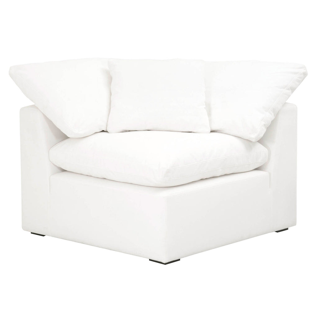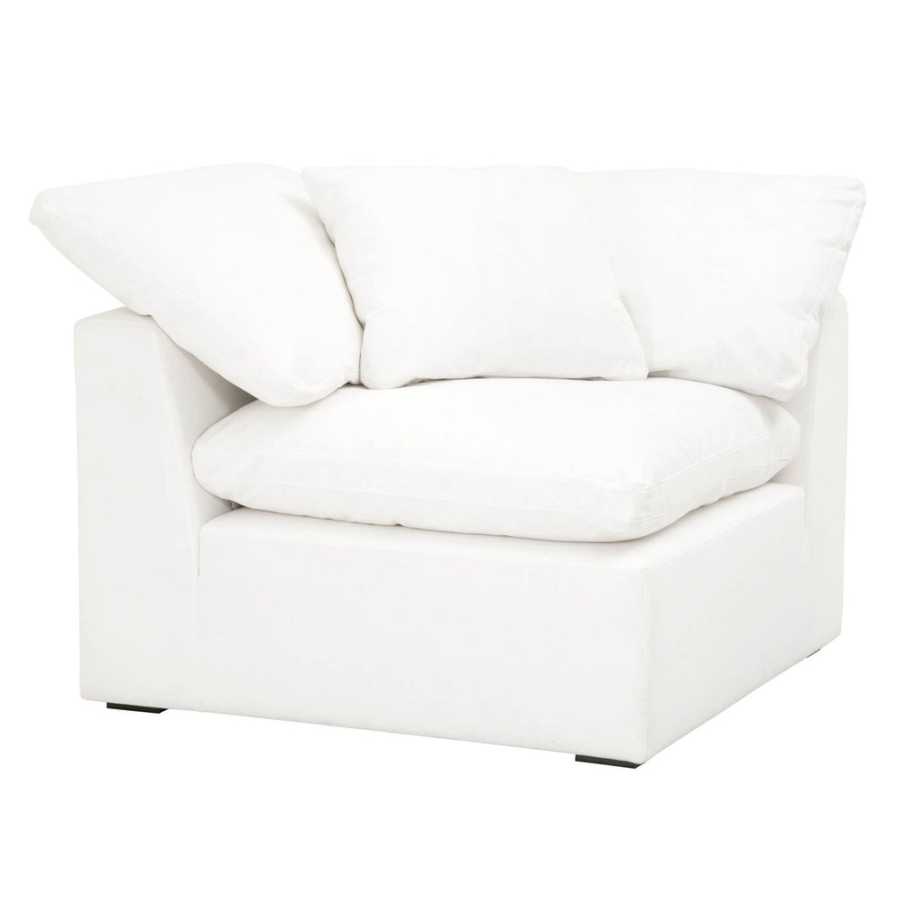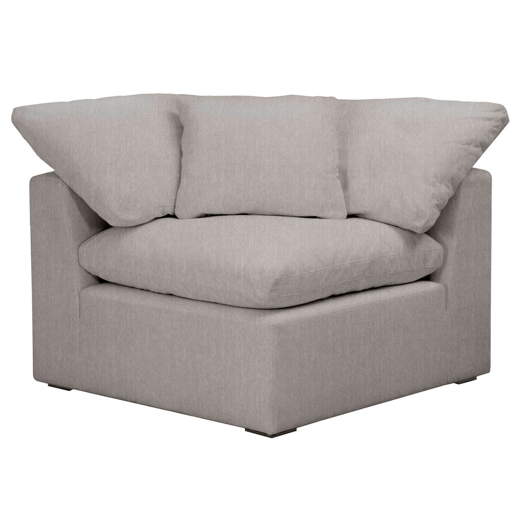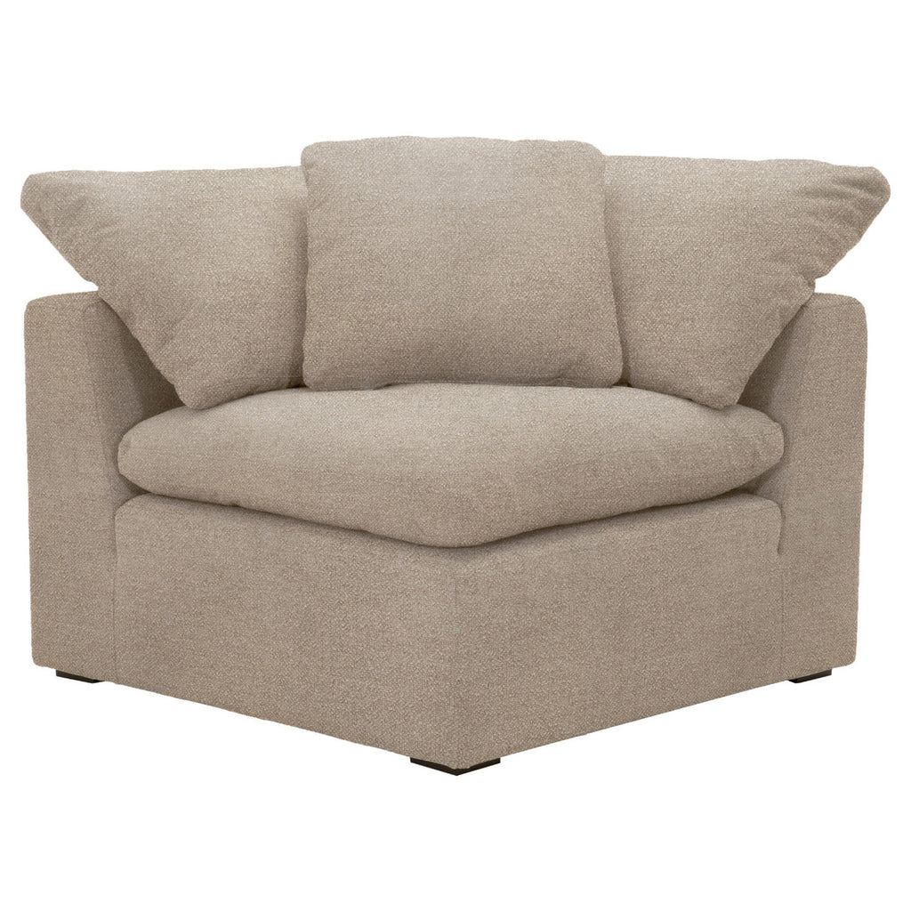 Add transitional style to your living room, family room, or den the Essentials for Living Sky modular corner chair in LiveSmart Peyton-Pearl fabric. With the seat cushion made of half down and half polyester, this chair is extremely comfortable to curl up and read a book or watch television on. It features reversible seat and back cushions, as well as ties to prevent the cushions from moving. Constructed with 3.8in coil sinuous springs and stain resistant fabric, this chair is meant for durability and dependability. Includes 1 square throw pillow made of 100% down. Pairs nicely with sectional sofas and works great as additional seating.
