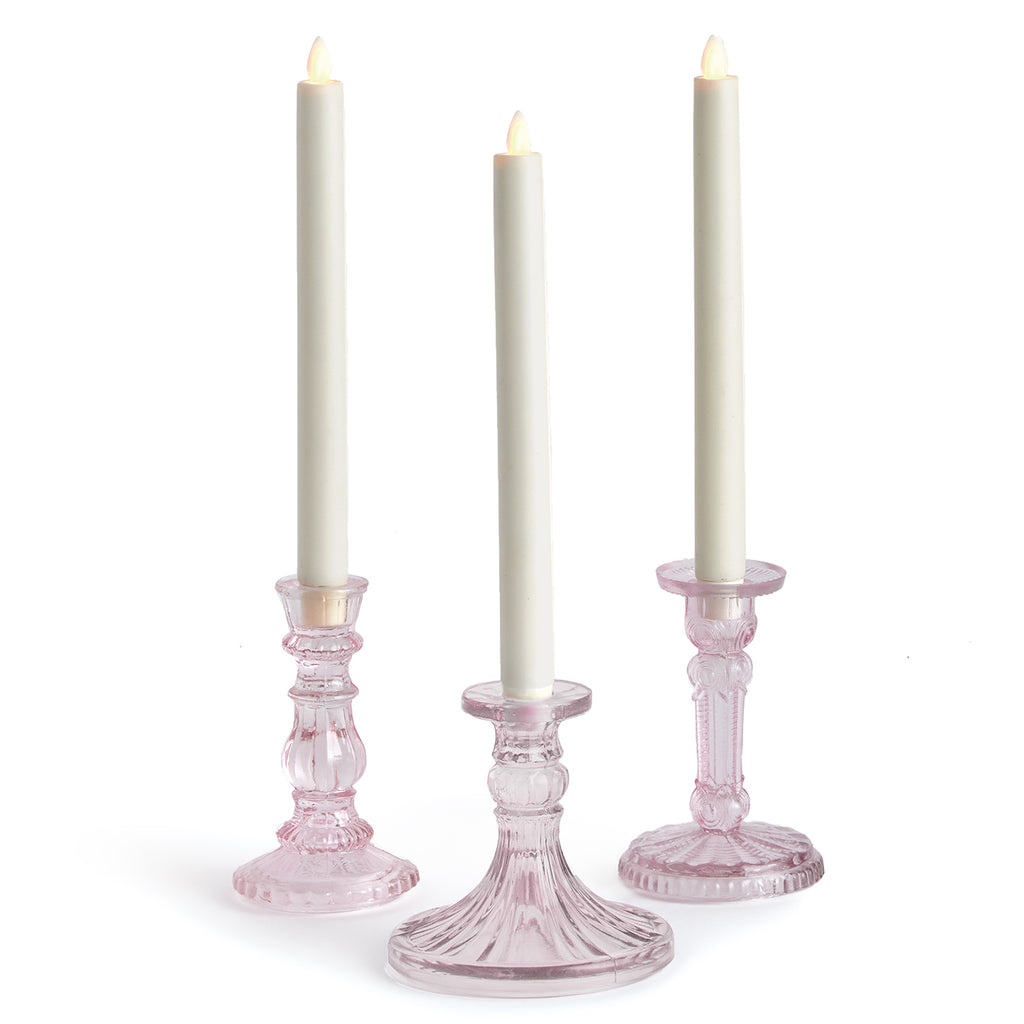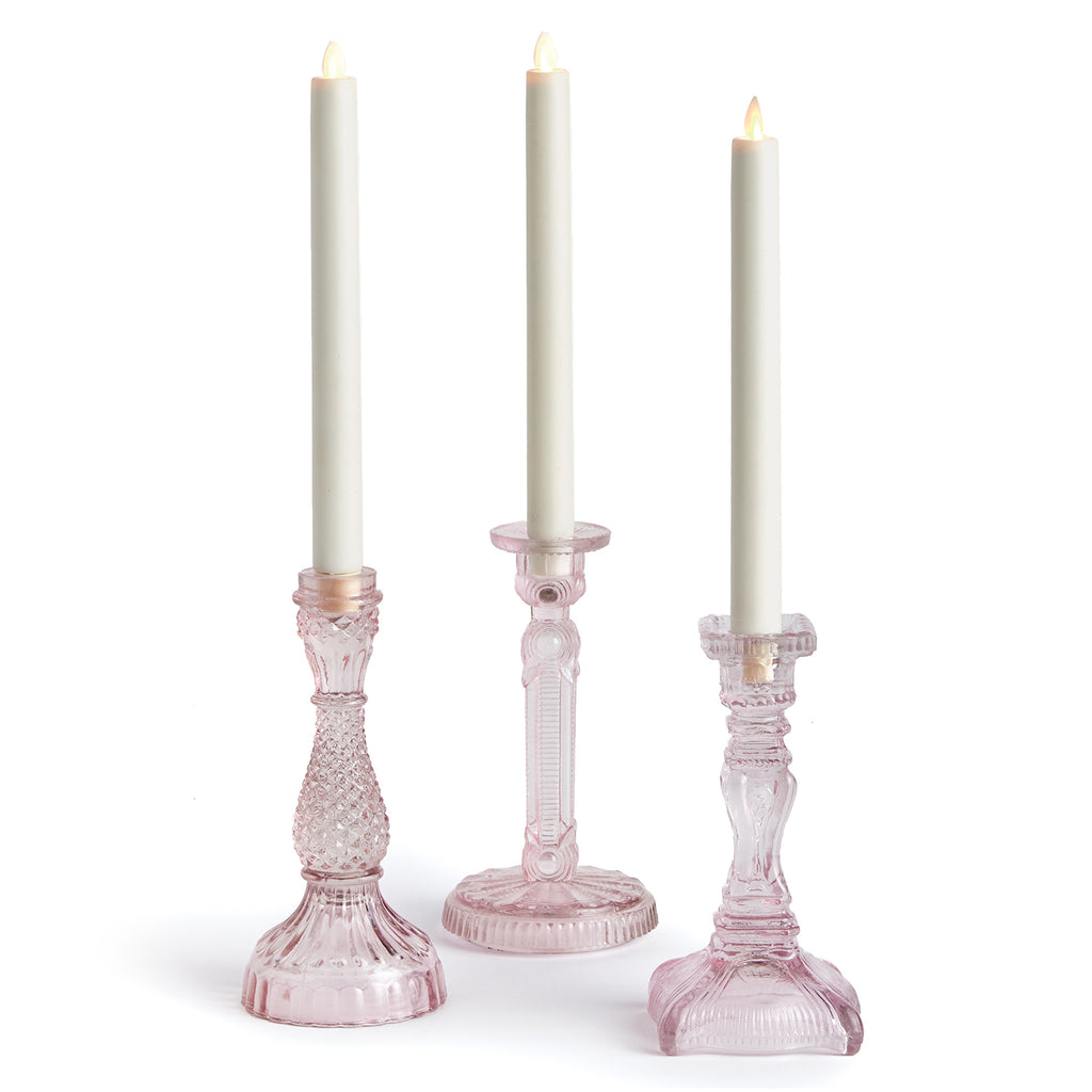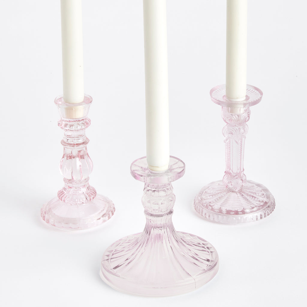 Delight in the details of these granny-chic taper holders. A set of three, each with it's own unique qualities, but all sit beautifully together. A simple way to a little character and charm to the traditional space
