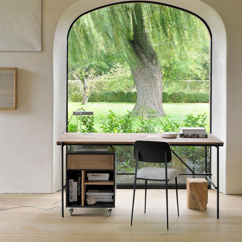 Some like a minimalistic look, others need more storage and organization. Whether you like the first or the latter: the Ethnicraft Oscar desk is available with or without drawers. Designed by Alain van Havre and teak drawer doors hand carved by our artisans.