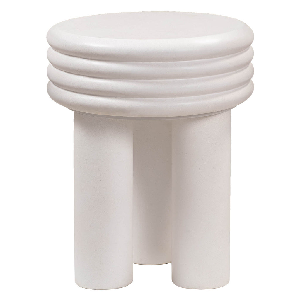 Whether indoors or out, the Eula side table will add a glamorous touch to your space. Crafted entirely of concrete, it features an ivory finish and a round ringed top supported by three cylindrical legs. Enhance your space with this versatile piece.