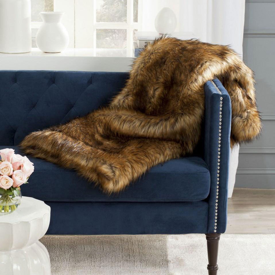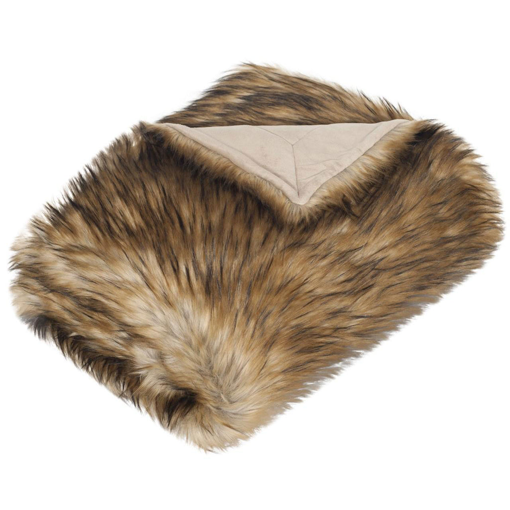 Cocooning becomes a luxurious endeavor with this soft and sensuous faux fur throw in warm brown acrylic plush simulating the color and shading of natural raccoon. Drape this plush throw across a bed or sofa for warmth, texture and a touch of Hollywood glam.