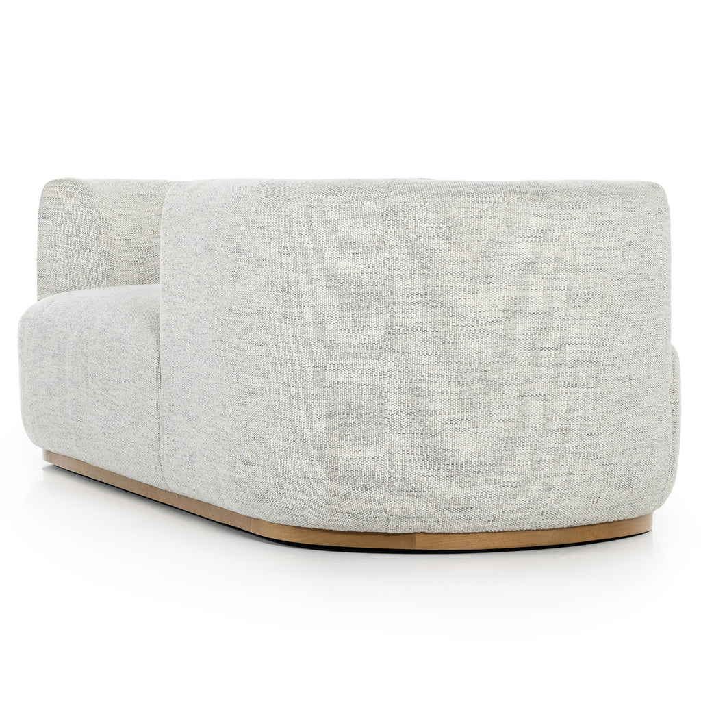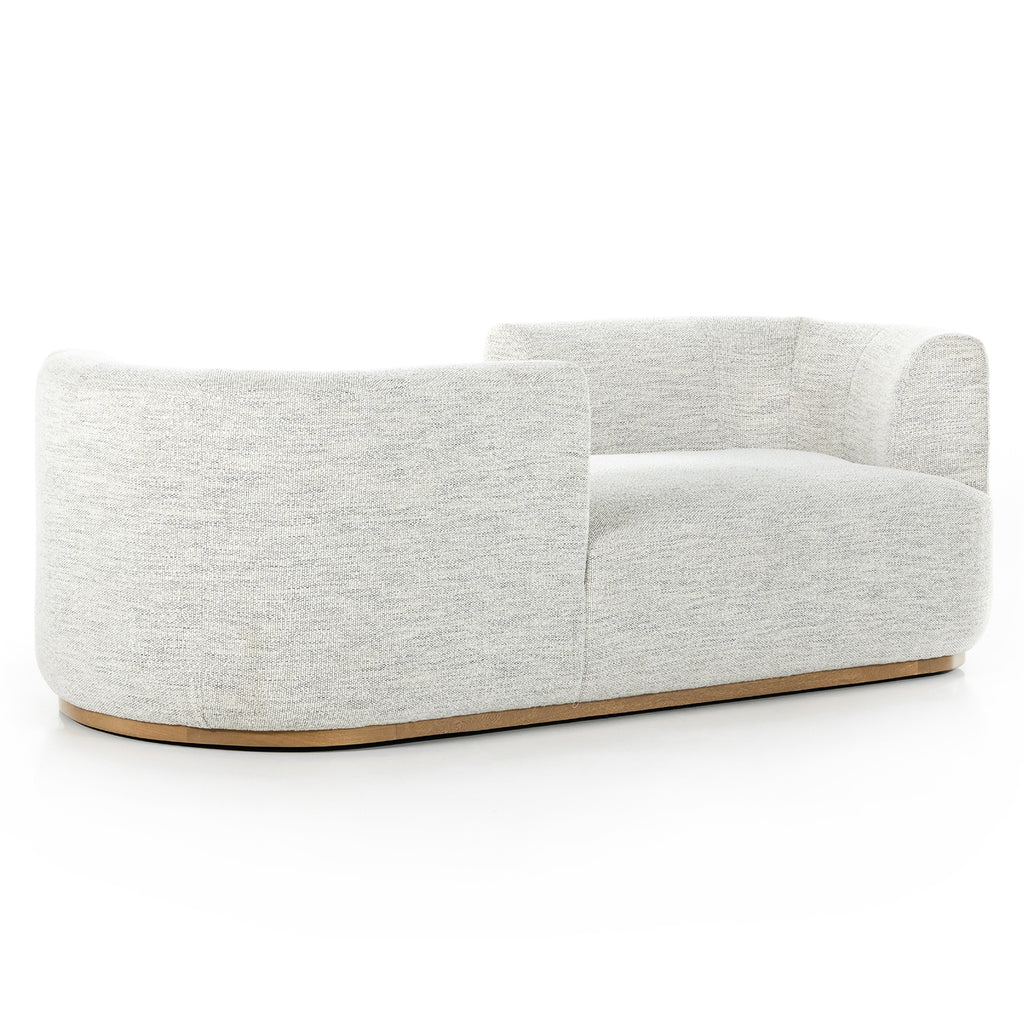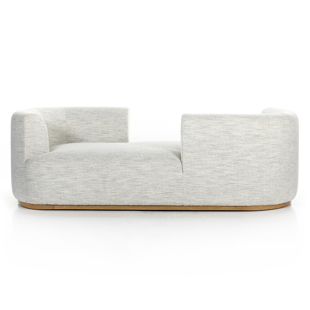 Modern European inspiration and plush curves come head to head in this stylish chaise. Upholstered in our soft liquid-repellent performance fabric that feels both casual and elevated. A rich base of Rosa Morada wood below frames the entire piece. Performance fabrics are specially created to withstand spills, stains, high traffic and wear, ensuring long-term comfort and unmatched durability.