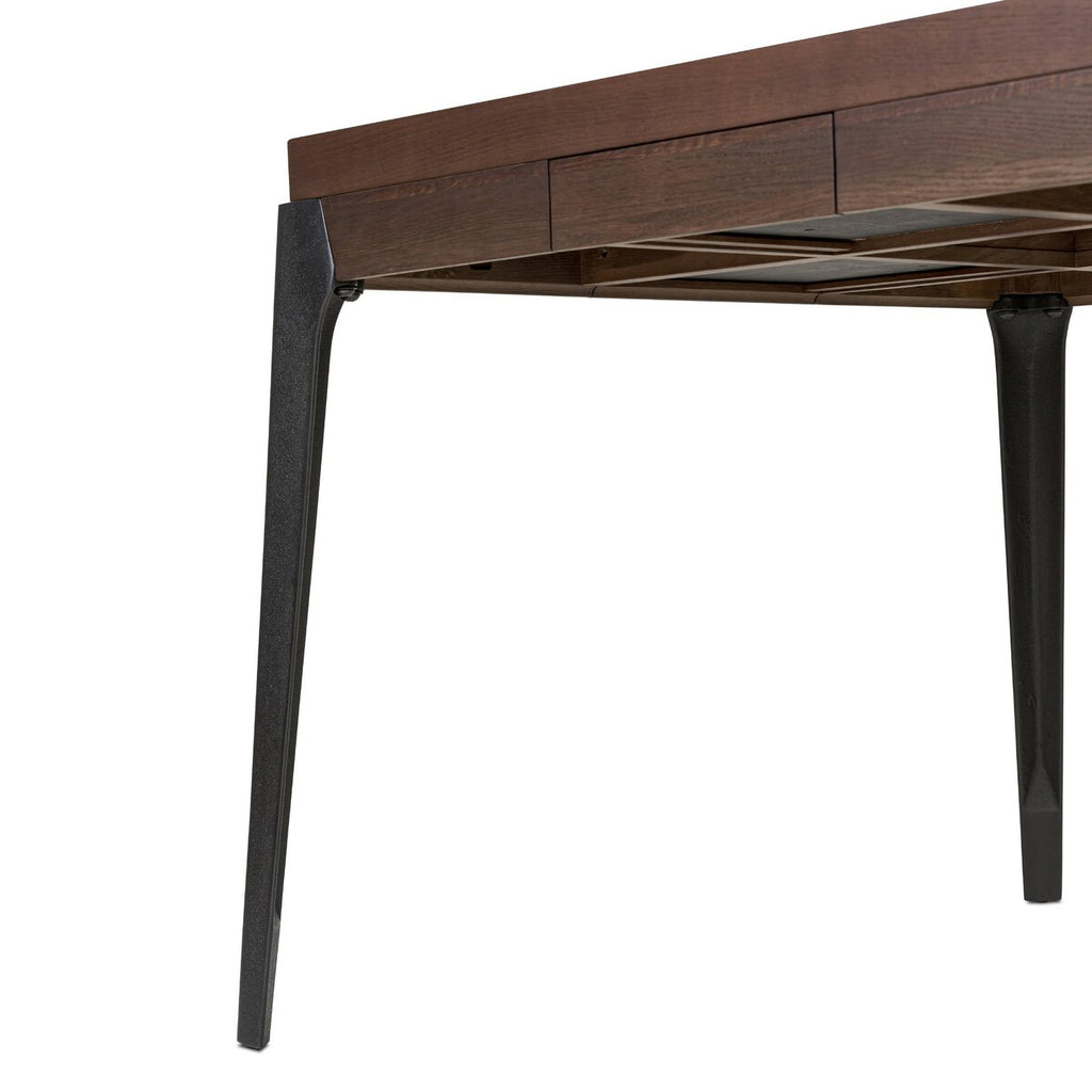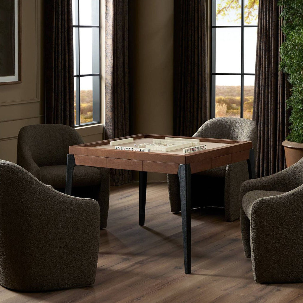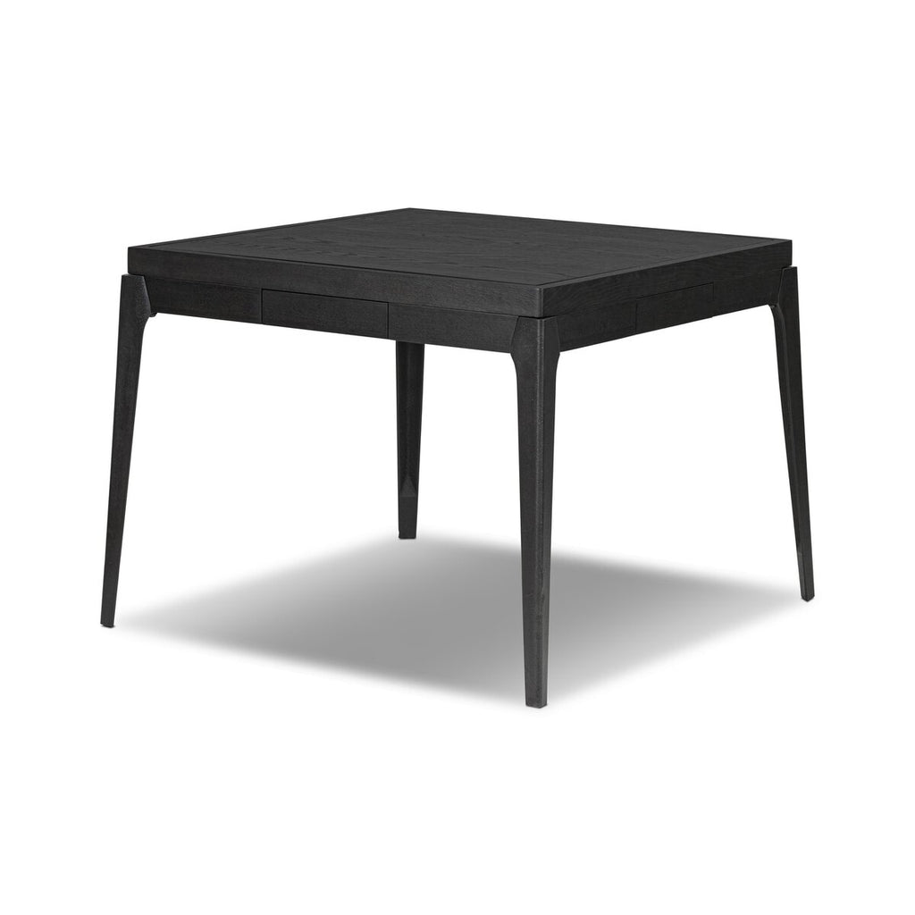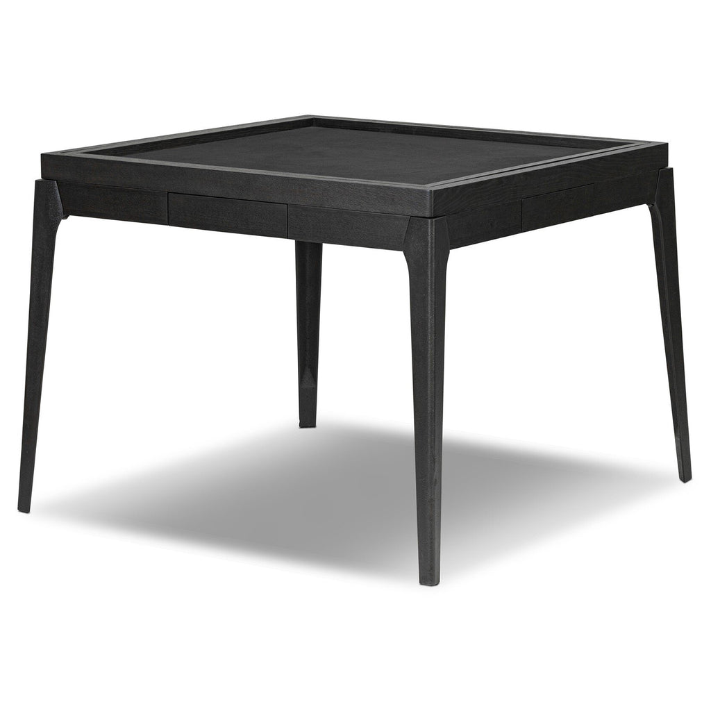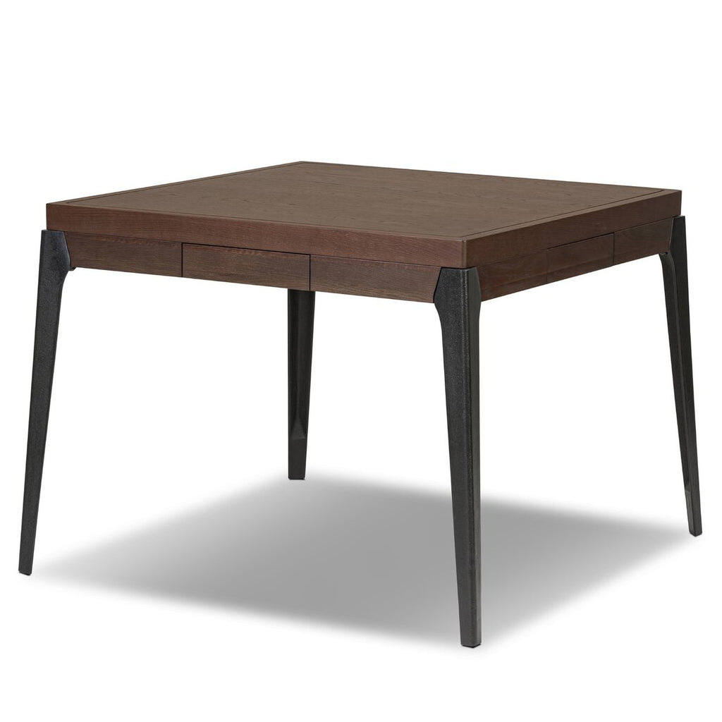 Crafted for fun. Midcentury-style cast iron legs support the oak top of this mahjong table, featuring drawers to store carved wood and steel game chips (and hold your drink). Flip the tabletop over to turn the leather-clad game surface into a wooden dining table for four. District Eight handcrafts classic games, reimagined with quality materials and dedicated artisanship in a unique blend of fun and functionality.