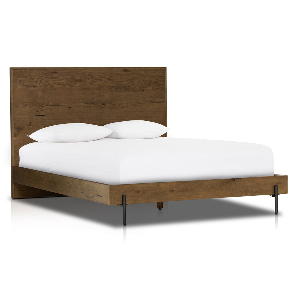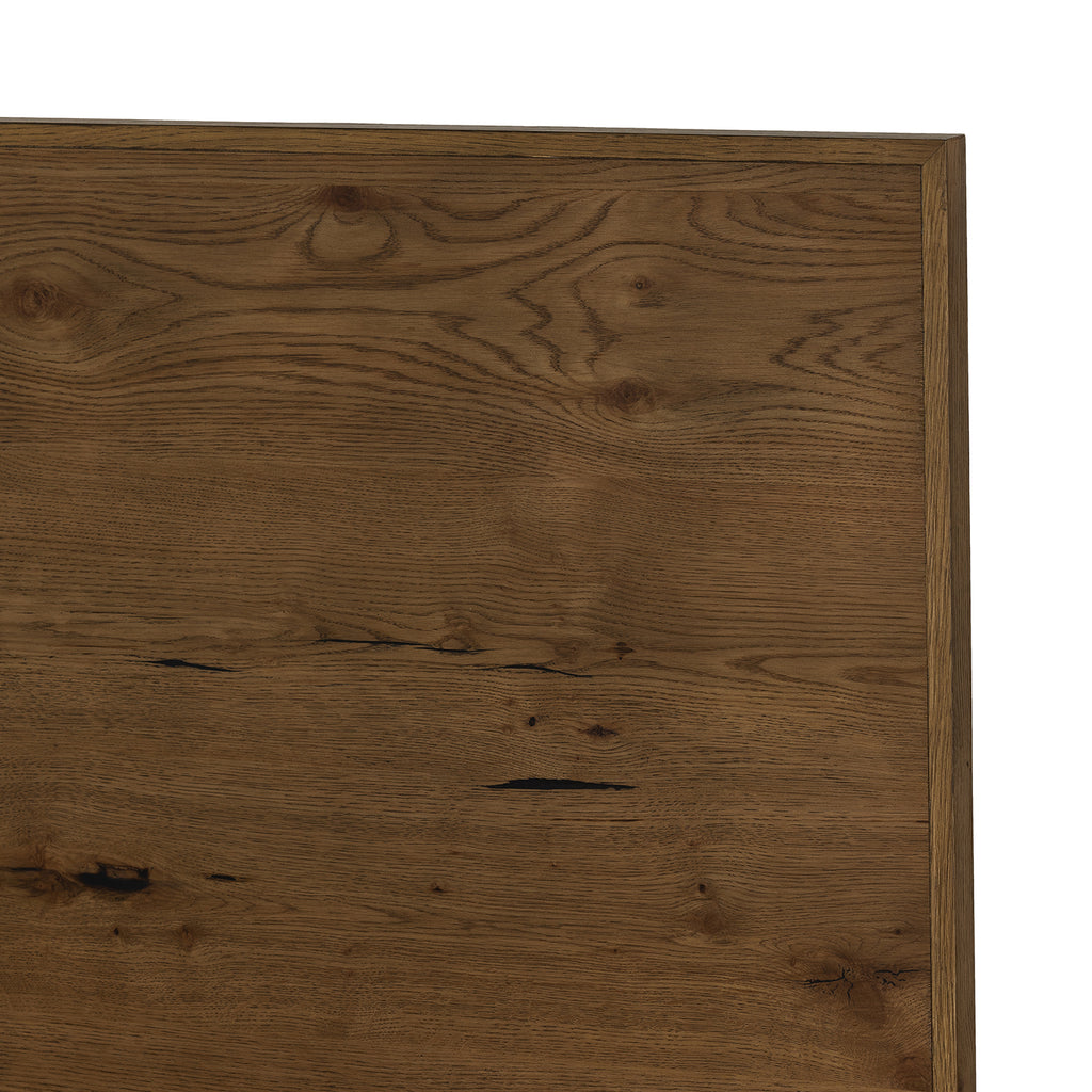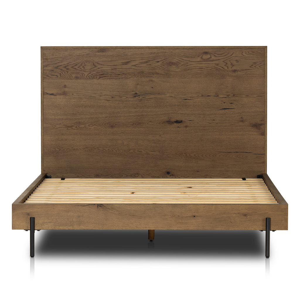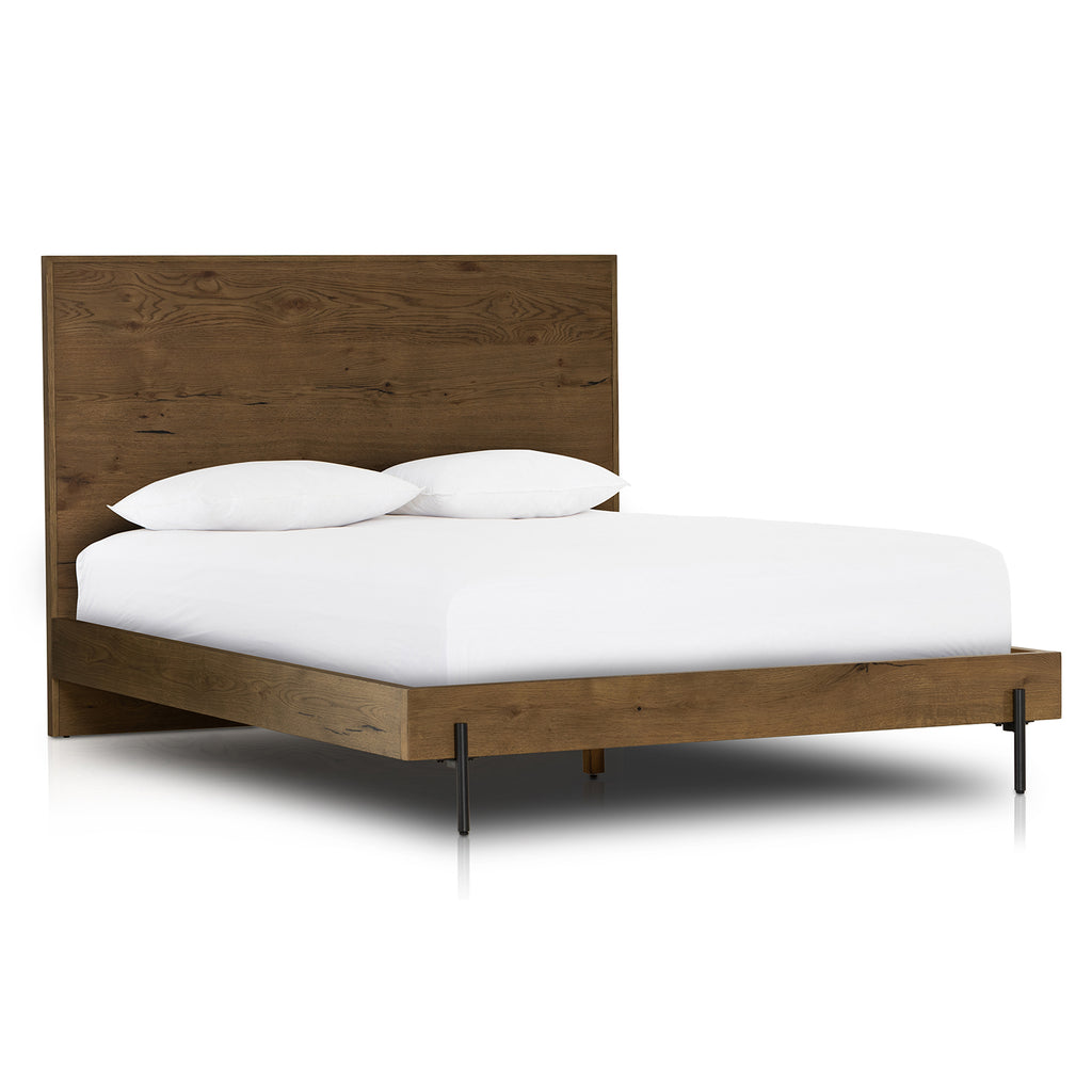 High style with organic vibes. Black resin fills in the natural cracks and graining of this cradle-base bed of beautiful oak. Subtle variance of resin placement and volume speaks to design's character-rich nature. Box spring not required. This bed is not compatible with an adjustable mattress.