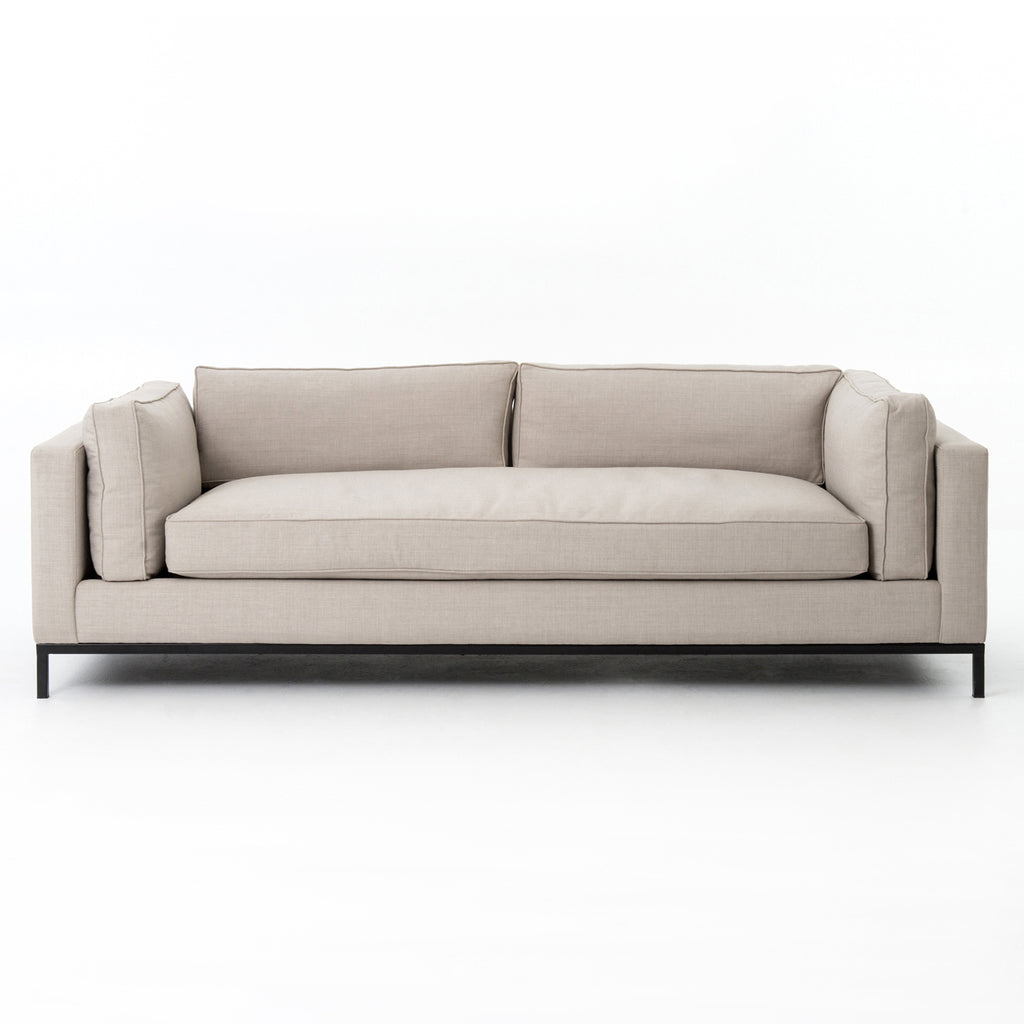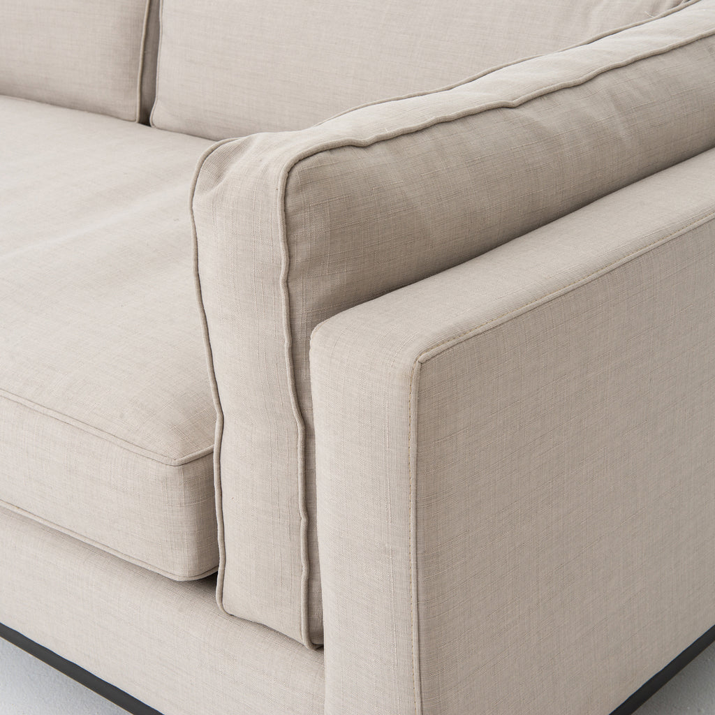 Resolutely modern, Four Hands furniture collection mixes materials and influences for a fresh, inspired look. Flexible style, luxurious comfort, and family-friendly upholstery. Clean, simple lines and a black iron base keep everything casual and chic.