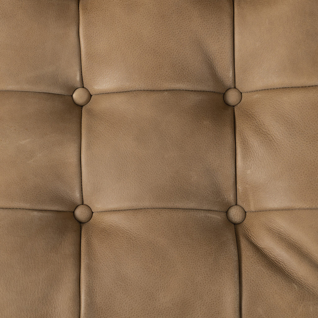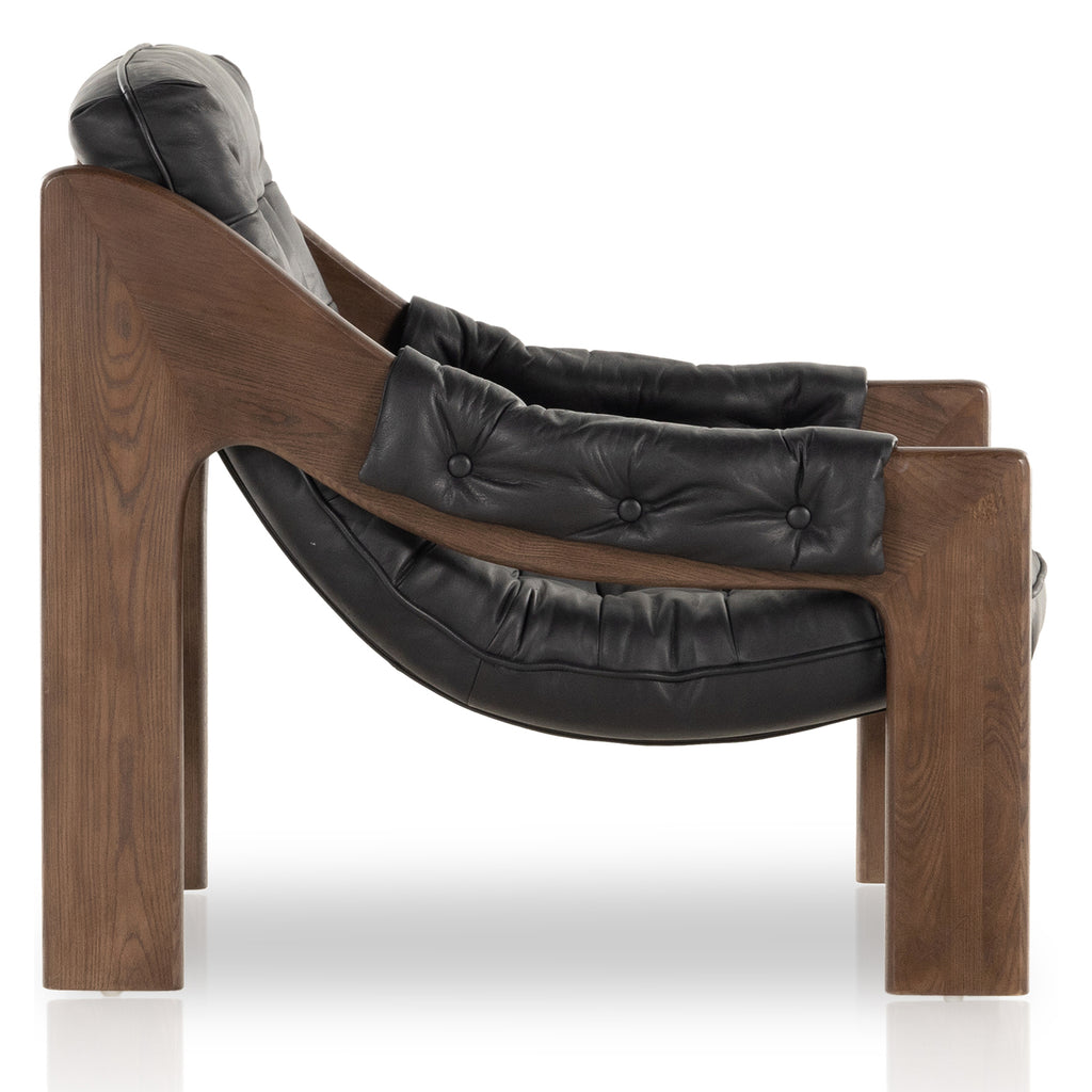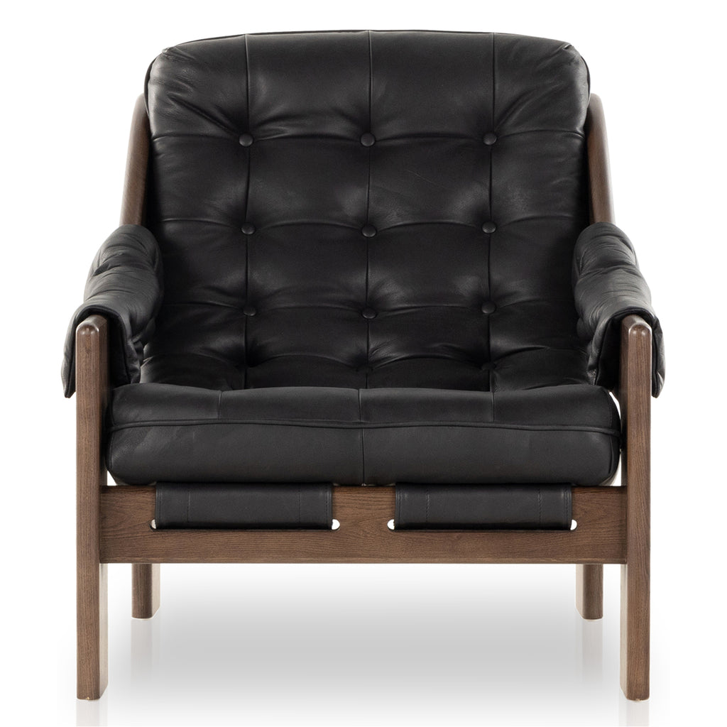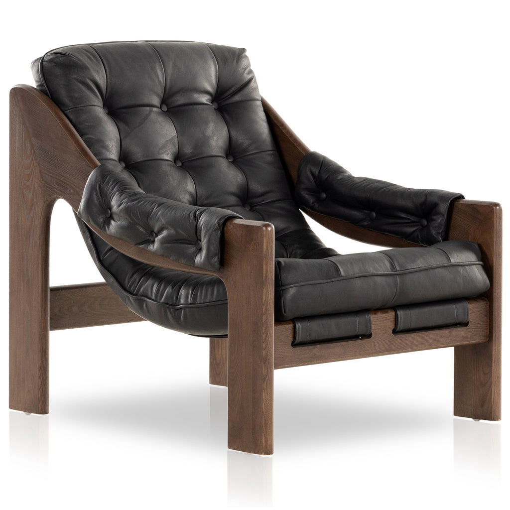 Bring some Brazilian influence to the table. With its sculpted form and inflated scale, brown ash frames black top-grain leather with dramatic tufting for a midcentury twist. Sourced from one of the oldest family-owned tanneries in Italy’s Bassano del Grappa, our heirloom leather covering is salvaged and processed from upcycled hides featuring an abundance of natural markings, scars and color variations. The result? Beautifully supple, buttery soft hides with an unmatched depth of color and richness, and an authentic lived-in look.