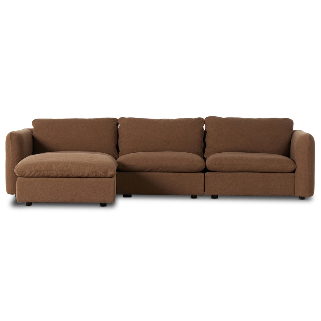 Inflated, pillow-inspired cushioning all around brings cozy comfort to the room. High-performance linen offers the best of both worlds on this plush and welcoming sectional. Inflated arms, feather-fiber blend cushioning, a soft, durable linen fabric and the coordinating ottoman make this spacious sectional a smart solution for the comfort-driven living space.