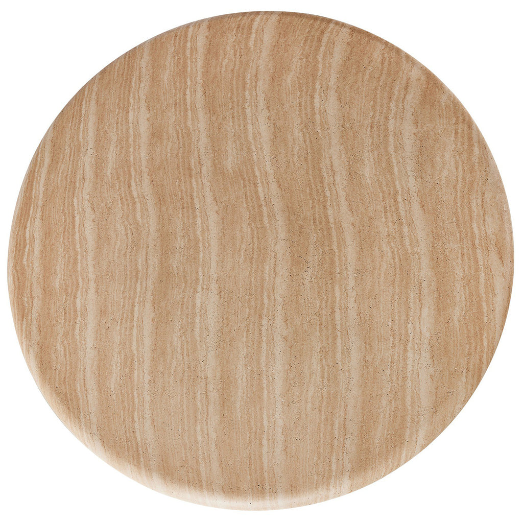 A beautiful dome-shaped pedestal base supports a rounded tabletop with bullnose edges. Made from cast concrete with a water-transfer finish which resemble natural stone.