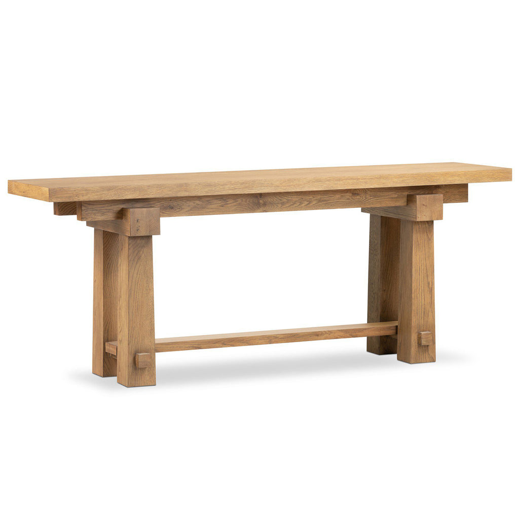 A console of a honey-finished oak, with joint and connection detailing for an artisan-style feel.