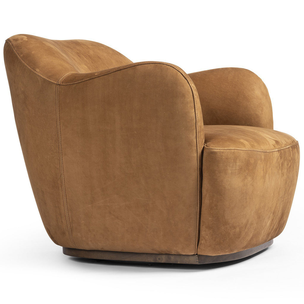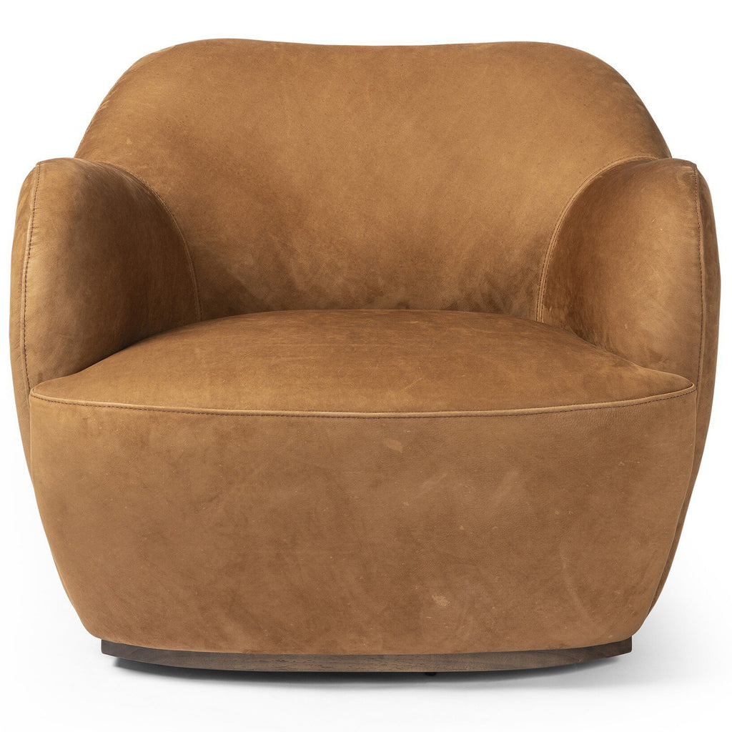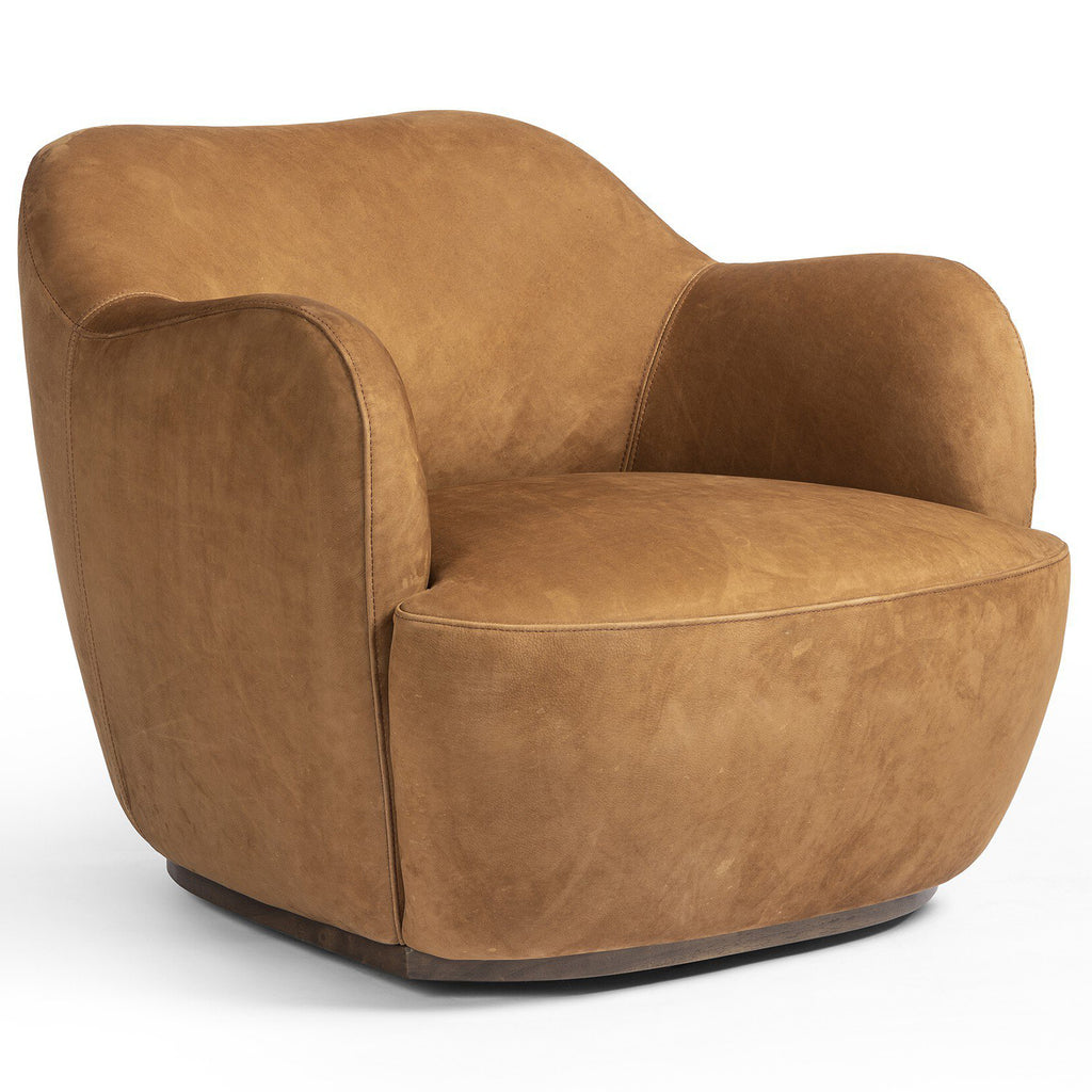 Top grain leather pairs with an S-spring seat and enveloped frame for an inviting look and feel on this 360-degree swivel chair.