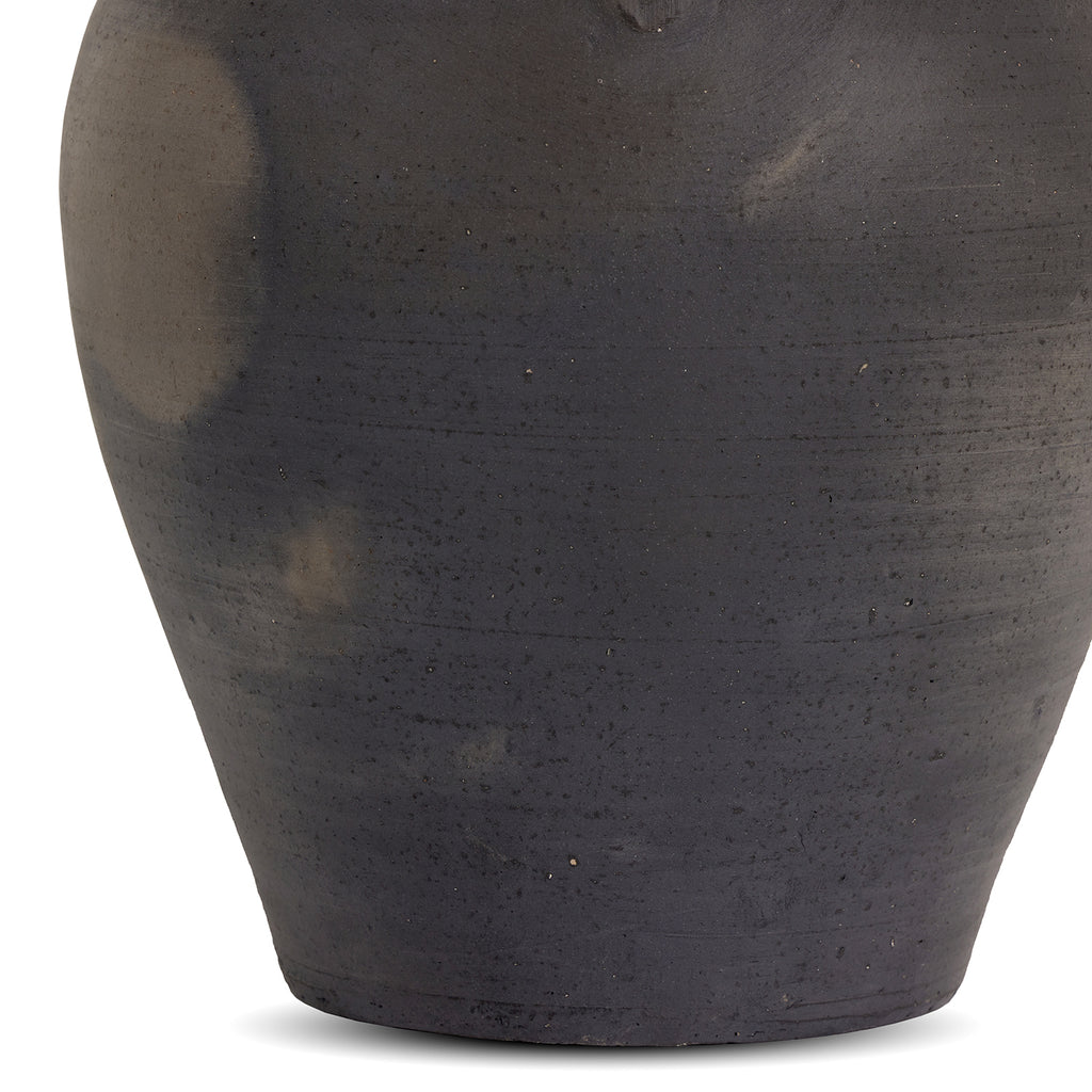 Style this decorative vase made of aged black ceramic in a wide range of places for an antiqued, cultural look, from an entryway table to a bookshelf. Not water-tight – a liner is required for filling the vase with water.