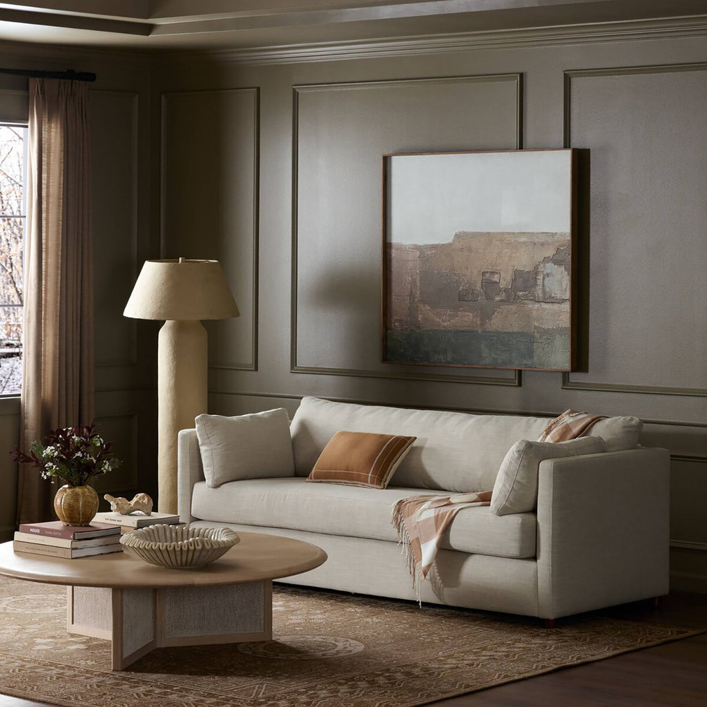 With its sleek profile and clean lines, this sofa is designed for effortless comfort and everyday lounging. Thin track arms and loose arm pillows bring a tailored, modern feel, while supportive cushions and S-spring suspension ensure it’s as inviting as it is versatile.
