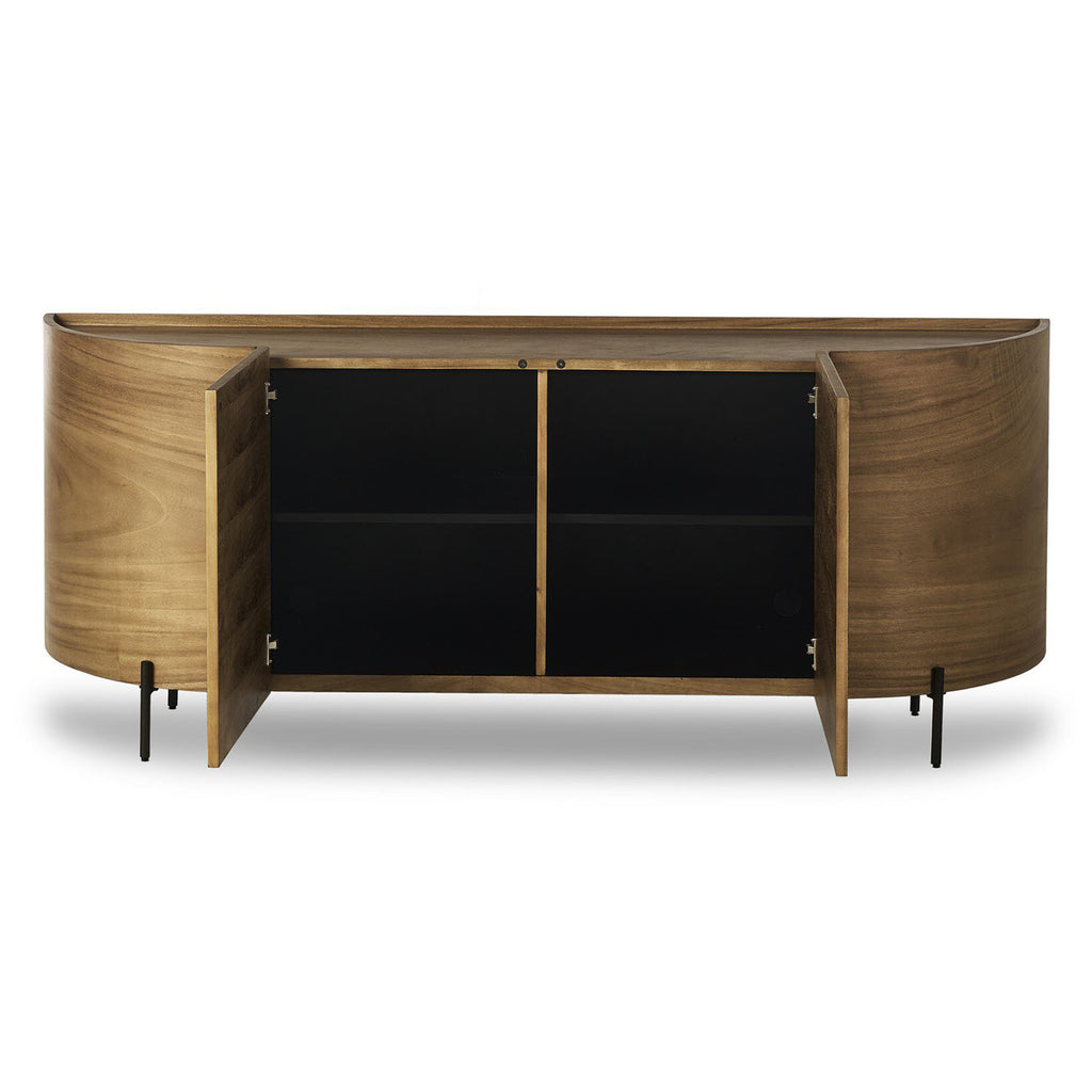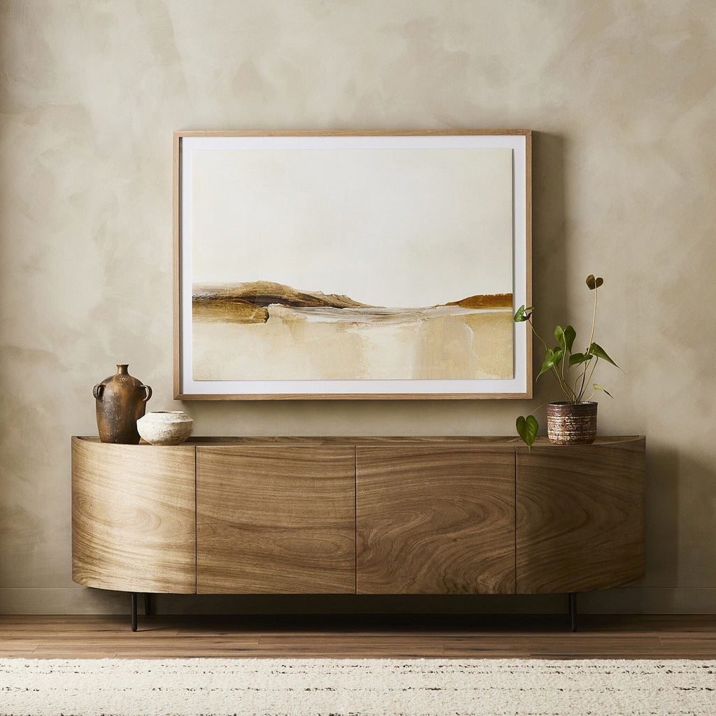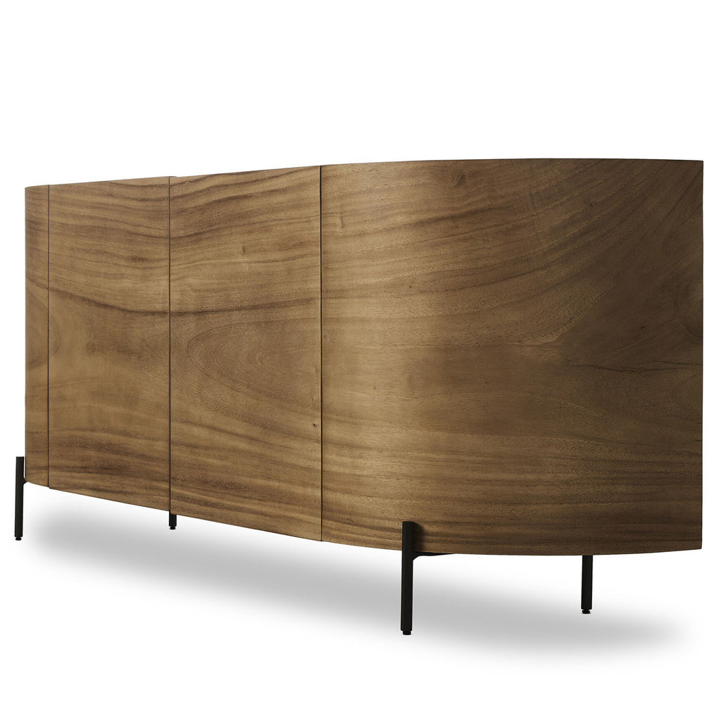 Resolutely modern, Four Hands furniture collection mixes materials and influences for a fresh, inspired look. With soft shaping and inset top inspired by classic jewelry setting, gold or caramel Guanacaste forms a beautifully sculpted silhouette, with natural high and lowlights coursing the entirety of this richly styled sideboard.