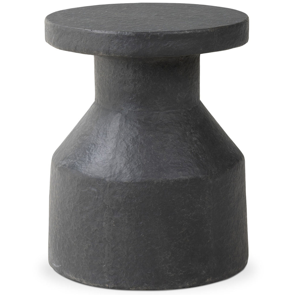 With heavy texture and contemporary shaping, an end table of distressed grey concrete can be styled just about anywhere.
