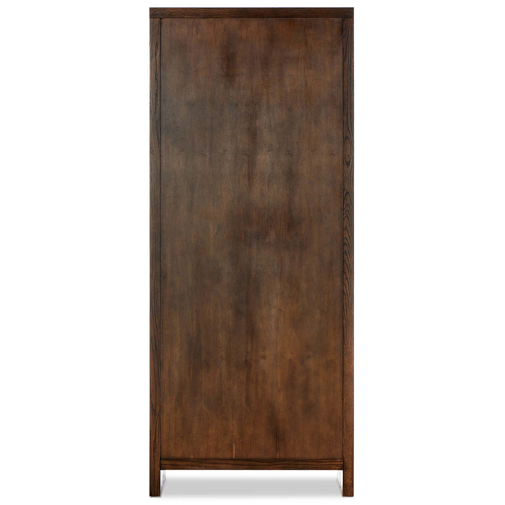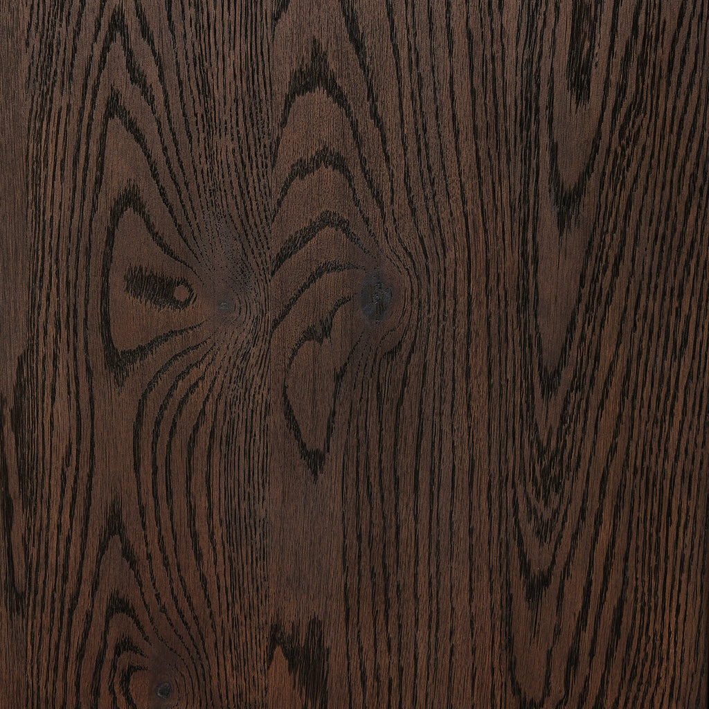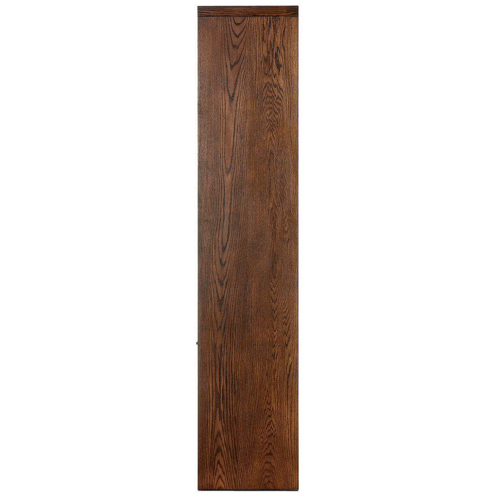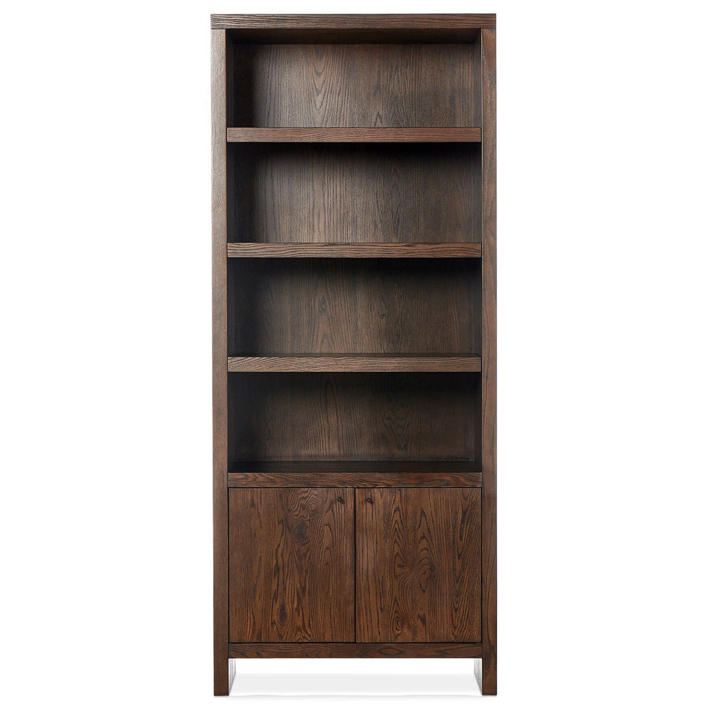Dark-finished oak shape four clean, spacious shelves, complemented by a two-door cabinet below, bringing bonus storage to your space.