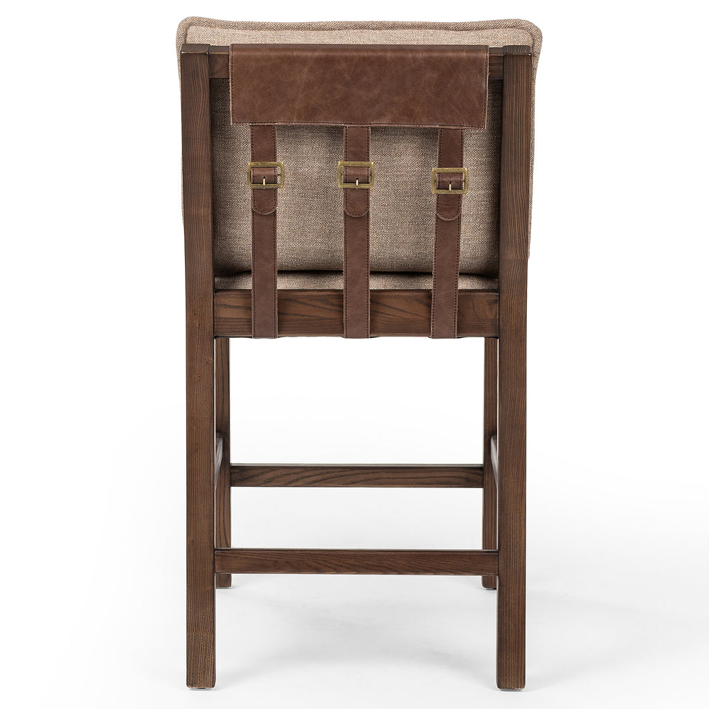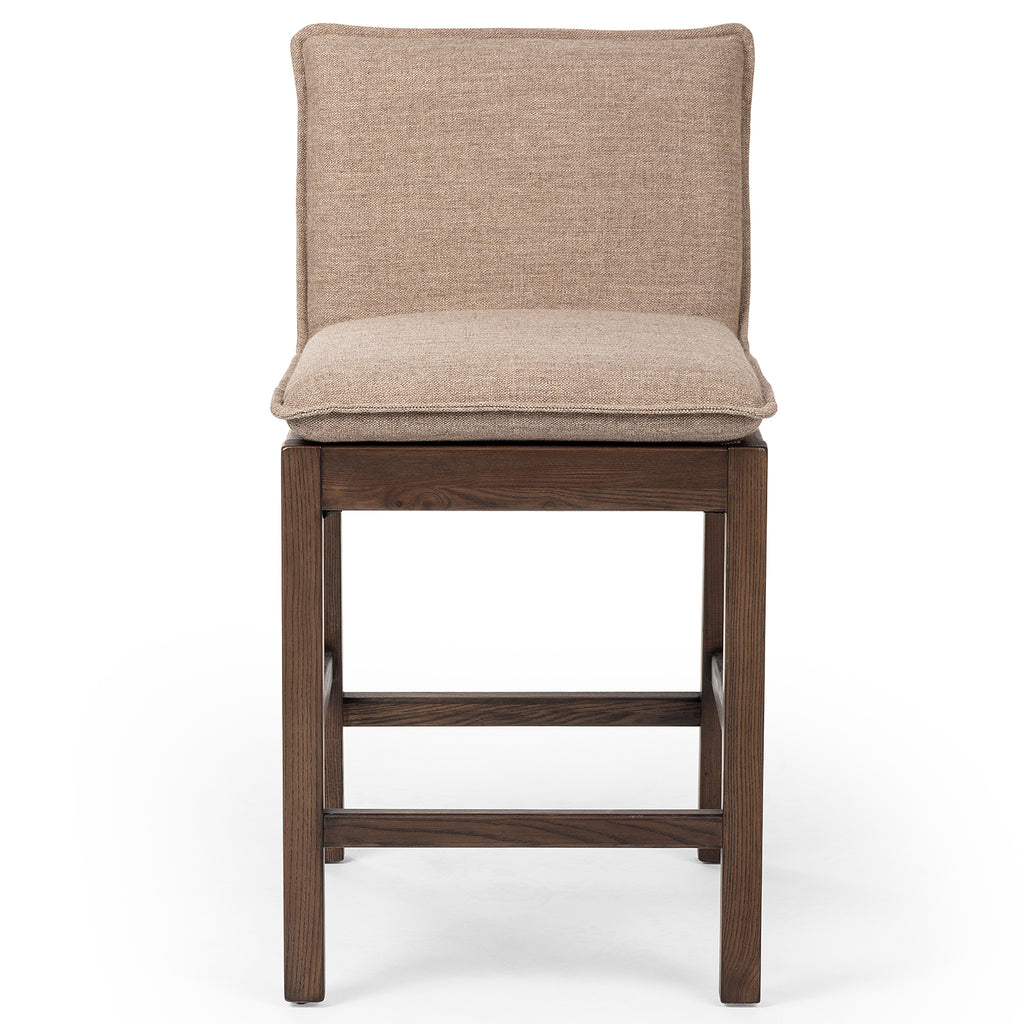 Almond-finished parawood frames cushioned seating upholstered in high-performance fabric. Perfectly sized for the counter.