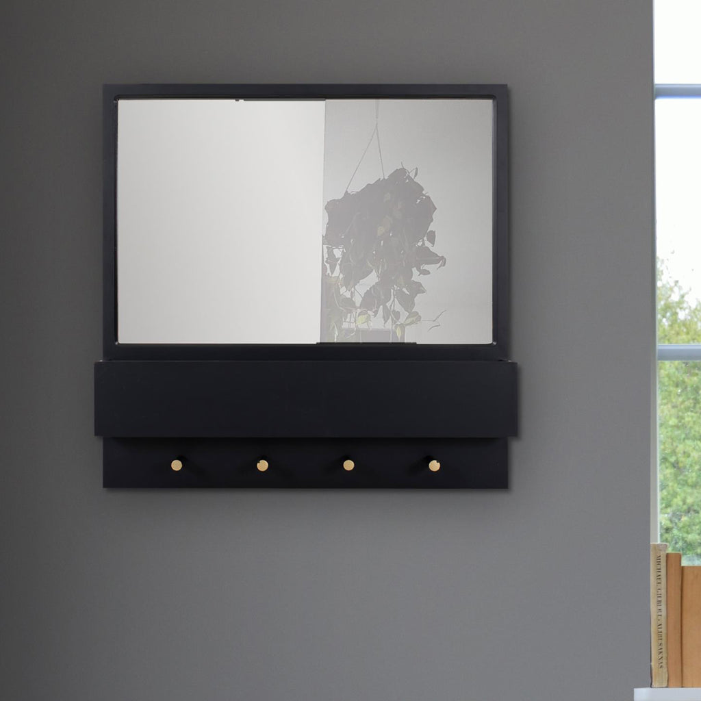 The Galt Wall Mirror was designed for todays busy lifestyle. The top mirror combined with a row of storage drawers and the garment hooks completely answer all of our daily needs. Finished in matte black and accented with touches of brass colored hardware, the Galt Wall Mirror offers style and function that works into some of the hottest design trends.