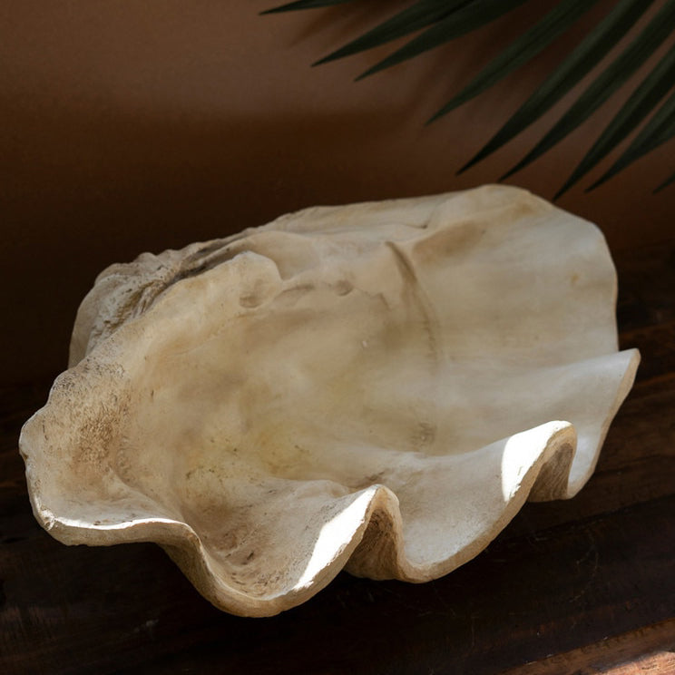 Use this clam shell for beachy decor anywhere. Drape it, fill it, or leave it empty for a style that recalls the ocean. This giant resin clam shell suits any beachy space.