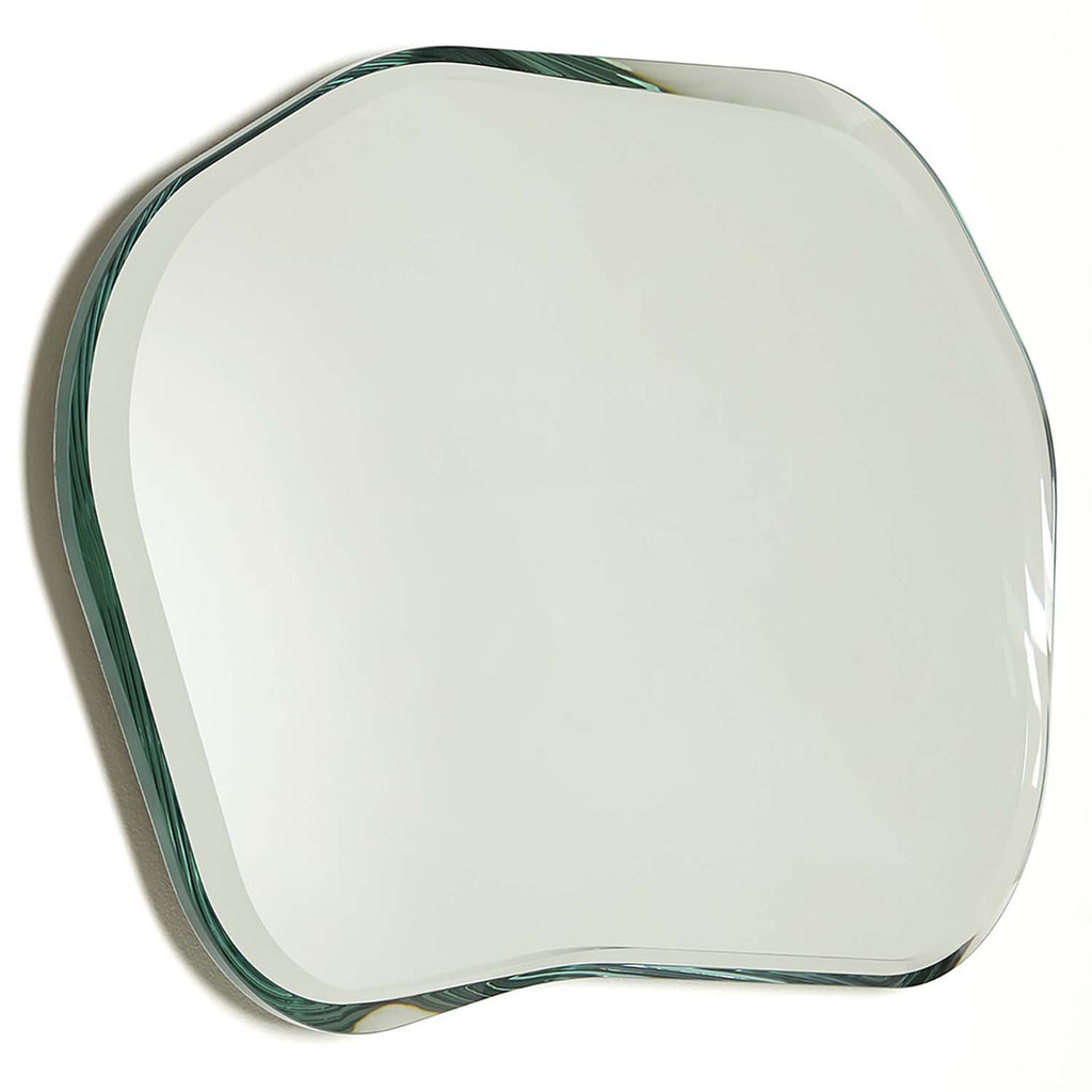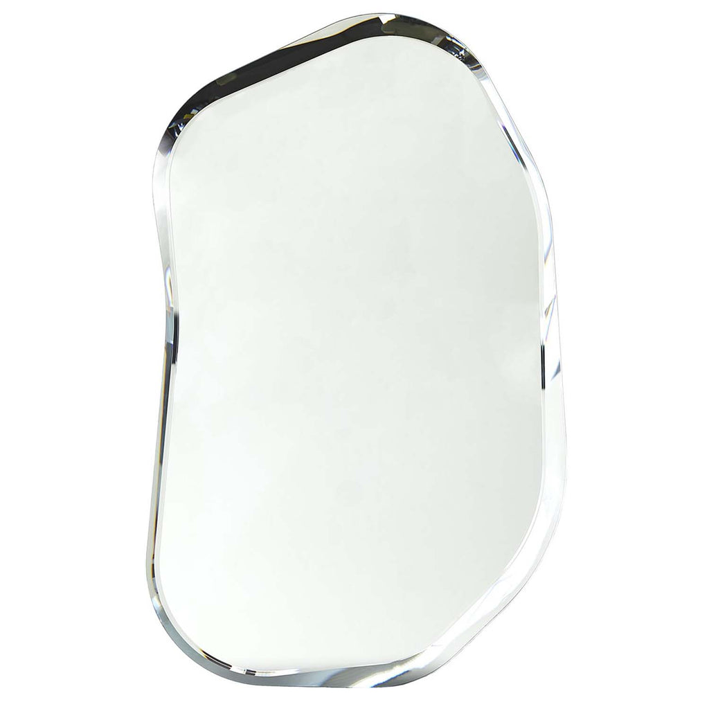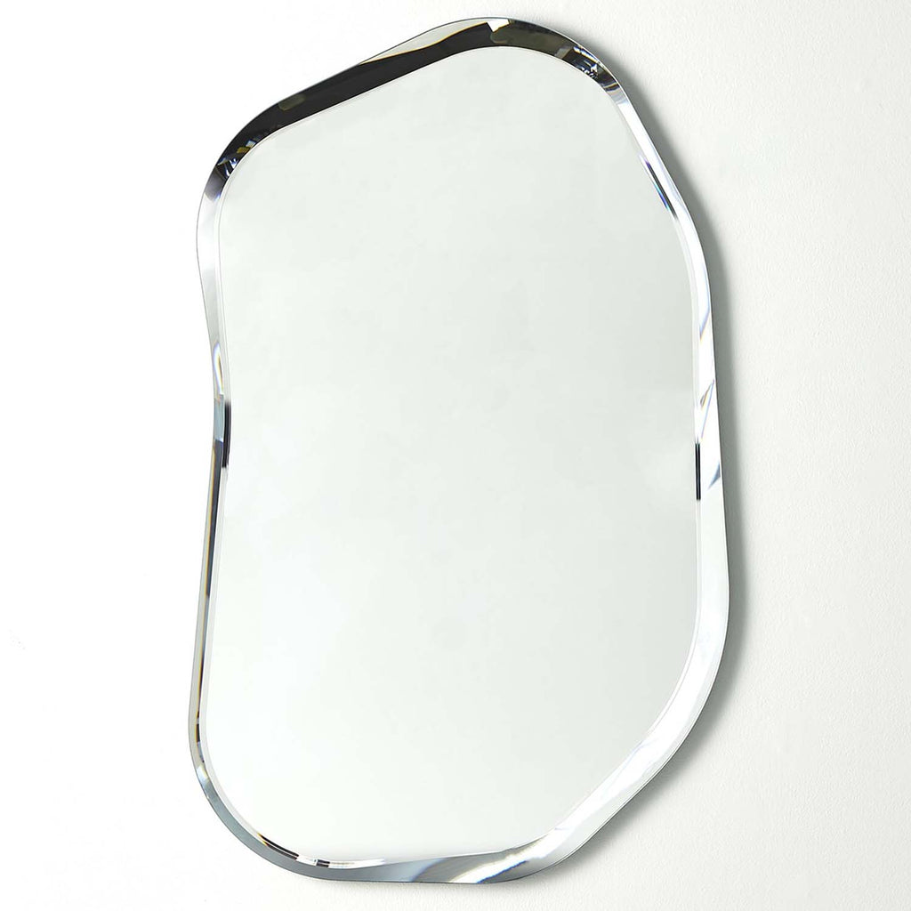 The Global Views Bean Bevel Mirror is beveled in an abstract shape made by Italian artisans using sophisticated machinery. An industrial-sized hanger on the back disperses 55 lb weight evenly across the wall cleat.