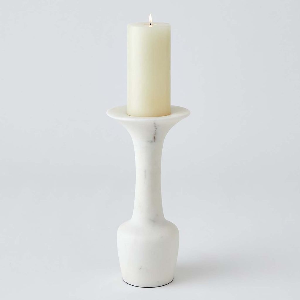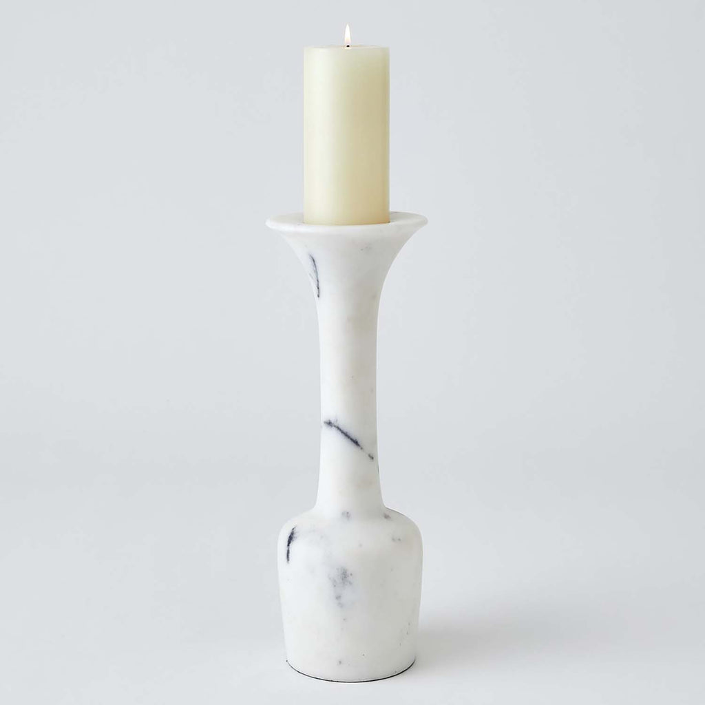 The Global Views Calyx Candle Holders are crafted of handturned solid marble with iron candle spike. As marble is a natural product, please be aware that there will always be variations in veining and color. This is to be expected and makes every marble product uniquely your own.