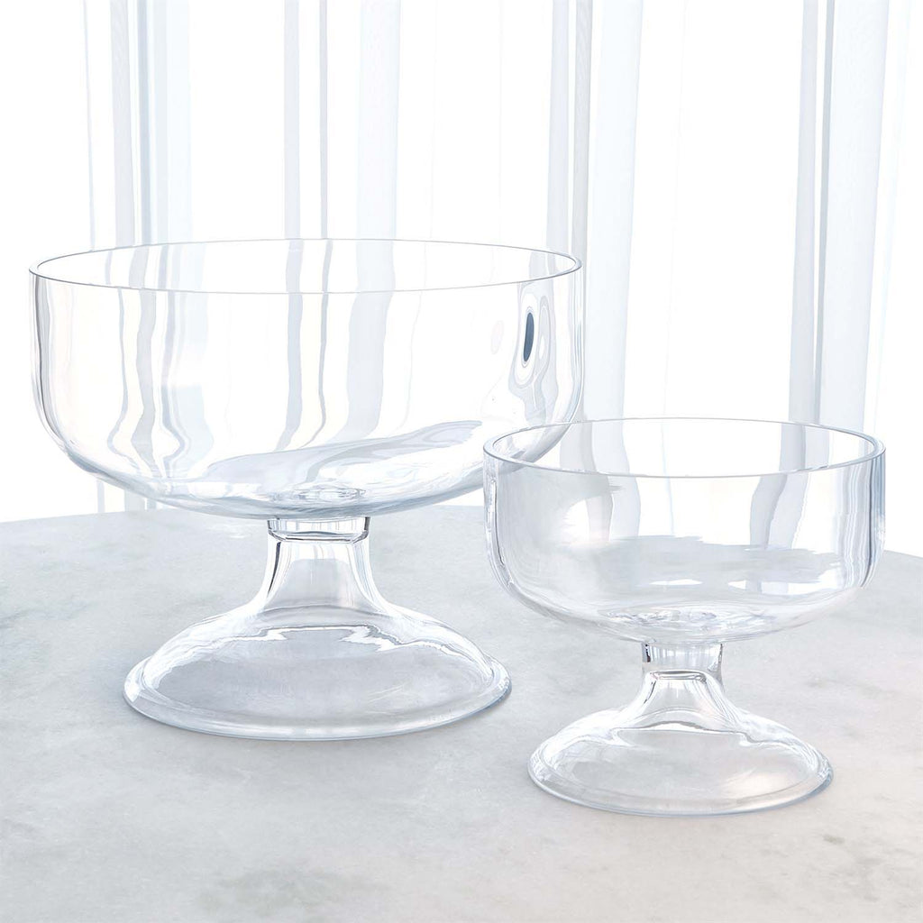 Quite large in stature, the Global Views Glass Compotes are made of clear molten glass mouth blown into a mold and perfect for displaying collectibles.