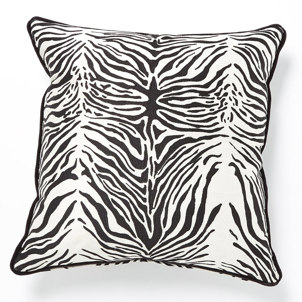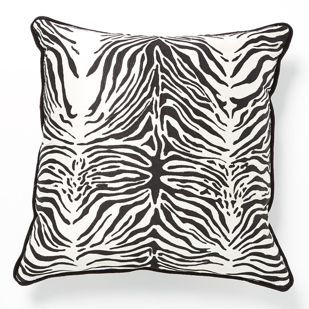 Inspired by Creative Director George Sellers' hand drawn pattern, the Global Views Zebra Pillow is fully embroidered with black velvet welting and includes down pillow insert.