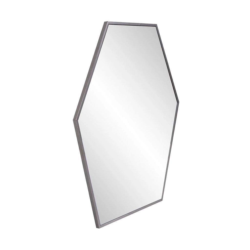 Industrial metal has been taken to a new level with the addition of a dark graphite finish on the Hexad Mirror. One of the hottest trends right now in home decor is the sleek profile of handmade metal frames. This piece boasts an hexagonal metal frame with a glossy graphite finish. Keyhole attachments are affixed to the back of the mirror so it is ready to hang right out of the box!