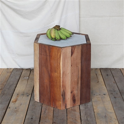 The juxtaposition of cool, white marble and warm, reclaimed wood brings sleek and rustic together for stylish contrast. This well-dressed side table is recommended for indoor use.