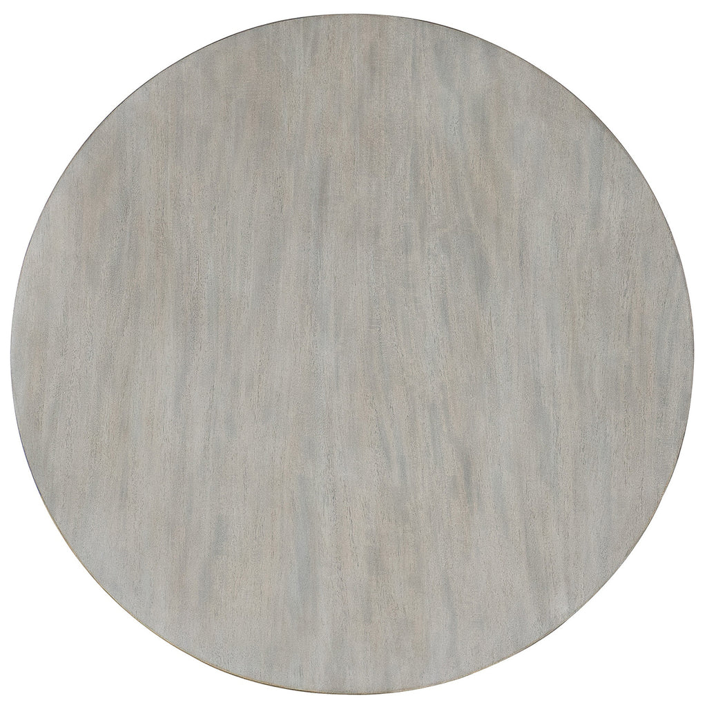 Earthy texture meets glam with the Guilded Accent Table in this stepped design with contrasting silver leaf insets. Gray-finished Primavera Veneers are paired with silver leaf accents on the stepped insets. Featuring an appealing round shape, the table has casters for easy mobility.