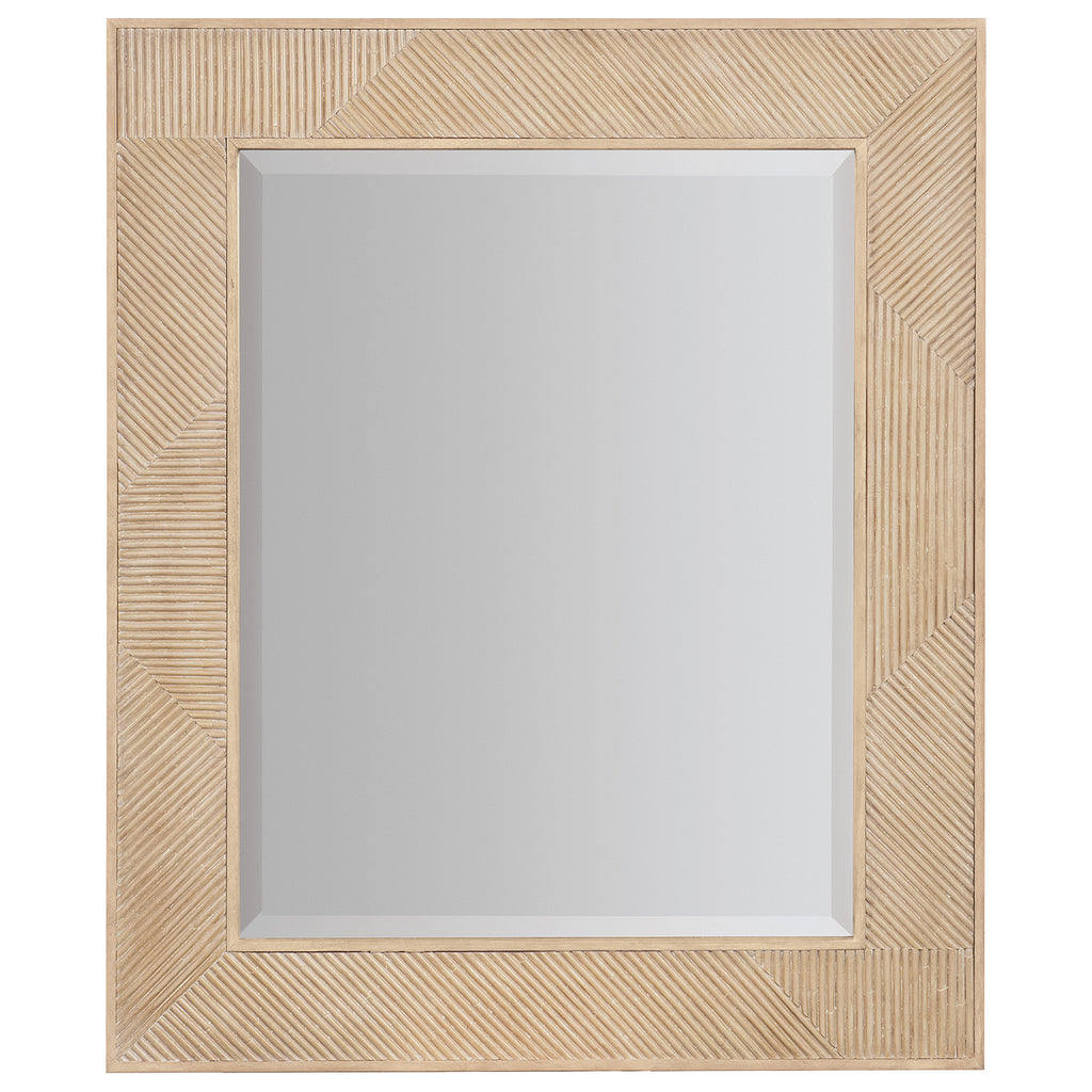 Tactile and textured, the tropical retreat-inspired Retreat Landscape Beveled Mirror is framed with carved resin in a reeded design. The mirror is finished in the sand-colored Dune, transparent by design to showcase the unique grain patterns of the wood veneers. In a rectangle shape, the mirror can hang either horizontally or vertically.