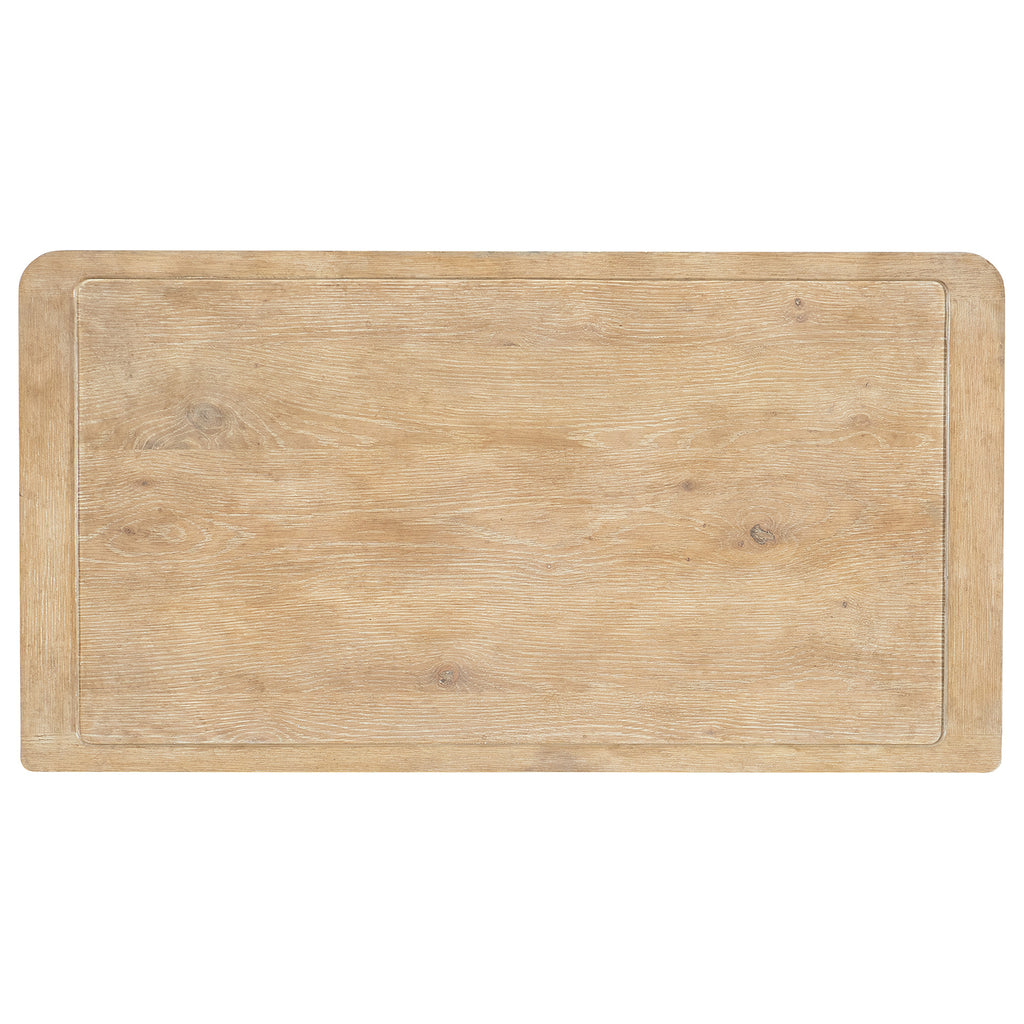 The Retreat Nightstand has a tranquil personality with a modern twist and organic, textured pewter bar pulls. Crafted of Oak and Maple Veneers, it is finished in the sand-colored Dune, transparent by design to showcase the unique grain patterns of the veneer. Featuring three self-closing drawers, the nightstand is elevated on shaped block feet.