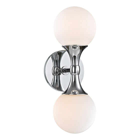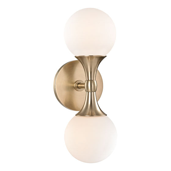 Delight in simplicity and symmetry in our Astoria family. Bubbles of light balance on and balloon forth from trumpets of cast metal. Opal-etched glass diffusers poise in balanced rows, above and below, along a wheel of light, concealing warm, dimmable LED bulbs.