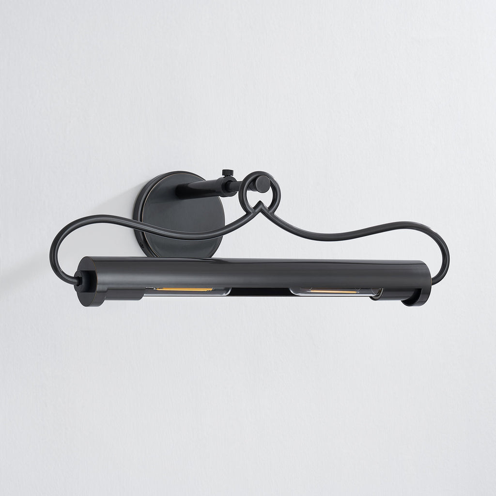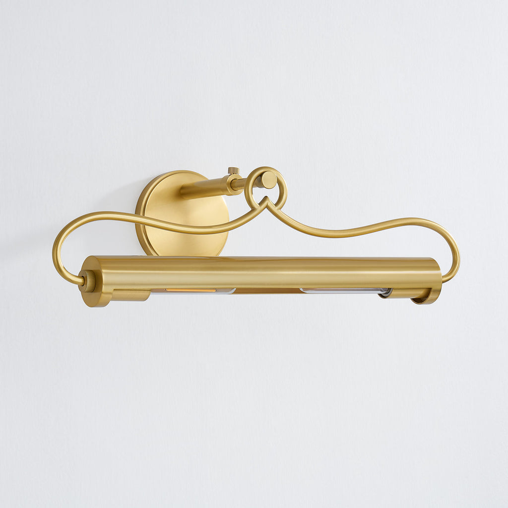 Renowned for built-to-last quality with a timeless feel, Hudson Valley offers a modern lighting collection with elegant touches, recalling vintage inspiration. A picture light with refined style, Berun features a slender tube accented by decorative embellishments. Gracefully curved arms support the light while an ornate loop-like finial adds a finishing touch. A sophisticated means of illuminating wall decor, Berun is available in two sizes and two finishes; Aged Brass and Old Bronze.