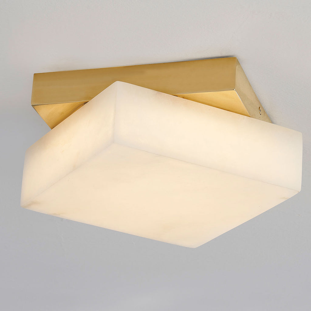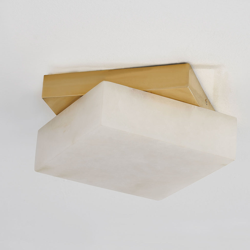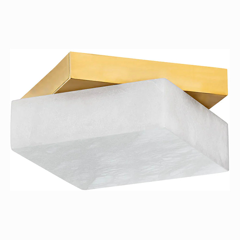 Renowned for built-to-last quality with a timeless feel, Hudson Valley offers a modern lighting collection with elegant touches, recalling vintage inspiration. The Hudson Valley Brockton features a thick diamond-shaped alabaster shade is set on a square Aged Brass backplate. Light fills the stone and reflects beautifully off the visible metal corners behind, while the smooth lines and rounded edges give the sconce and flush-mount a soft, soothing feel.