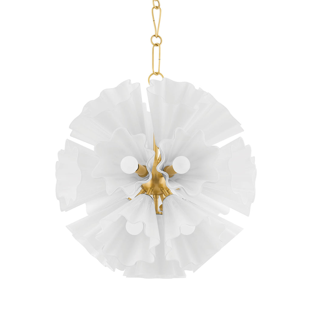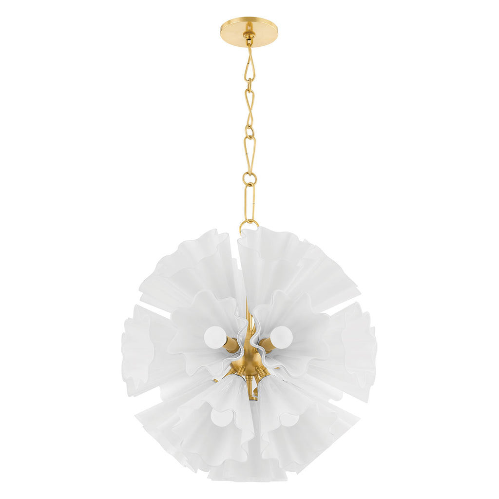 Renowned for built-to-last quality with a timeless feel, Hudson Valley offers a modern lighting collection with elegant touches, recalling vintage inspiration. Marked by symmetry and high-drama to marvel at from below, Hudson Valley Lighting chandeliers illuminate your living or dining room with inviting warmth. Capri is a beautifully botanical take on the sputnik silhouette. Wavy, floral-like shades of opal glossy glass sprout from a center orb to give the piece a natural, ruffled effect. The large-scale Hudson Valley Capri chandelier fills the entire space with a warm, tranquil glow.