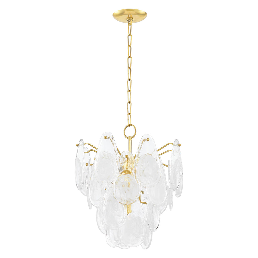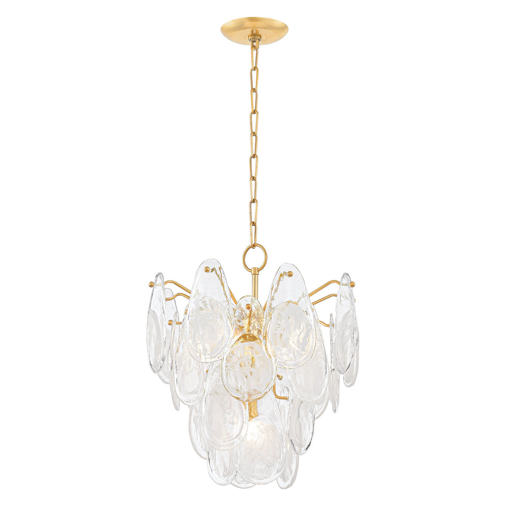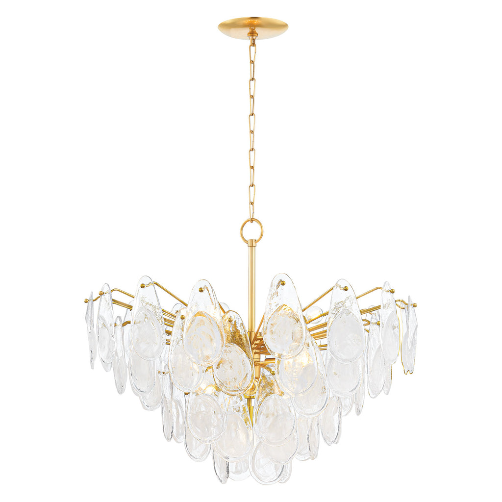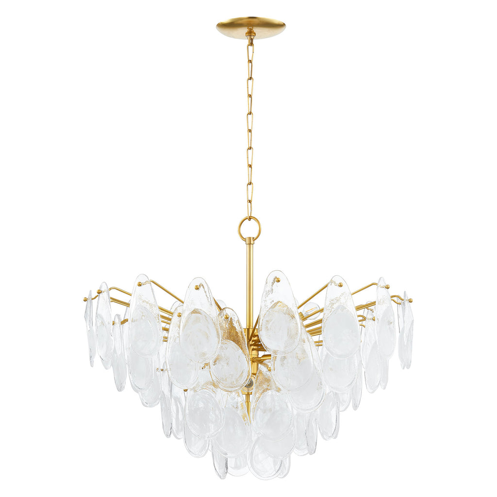 Renowned for built-to-last quality with a timeless feel, Hudson Valley offers a modern lighting collection with elegant touches, recalling vintage inspiration. Smooth Blonchino Piastra glass teardrops are suspended in tiers from the waterfall-like Darcia. Reminiscent of shells or falling rain, the hand-blown glass pieces sparkle as they soften and diffuse the light. Available as a sconce, or as a chandelier in three sizes, Darcia makes a poetic and organic statement.