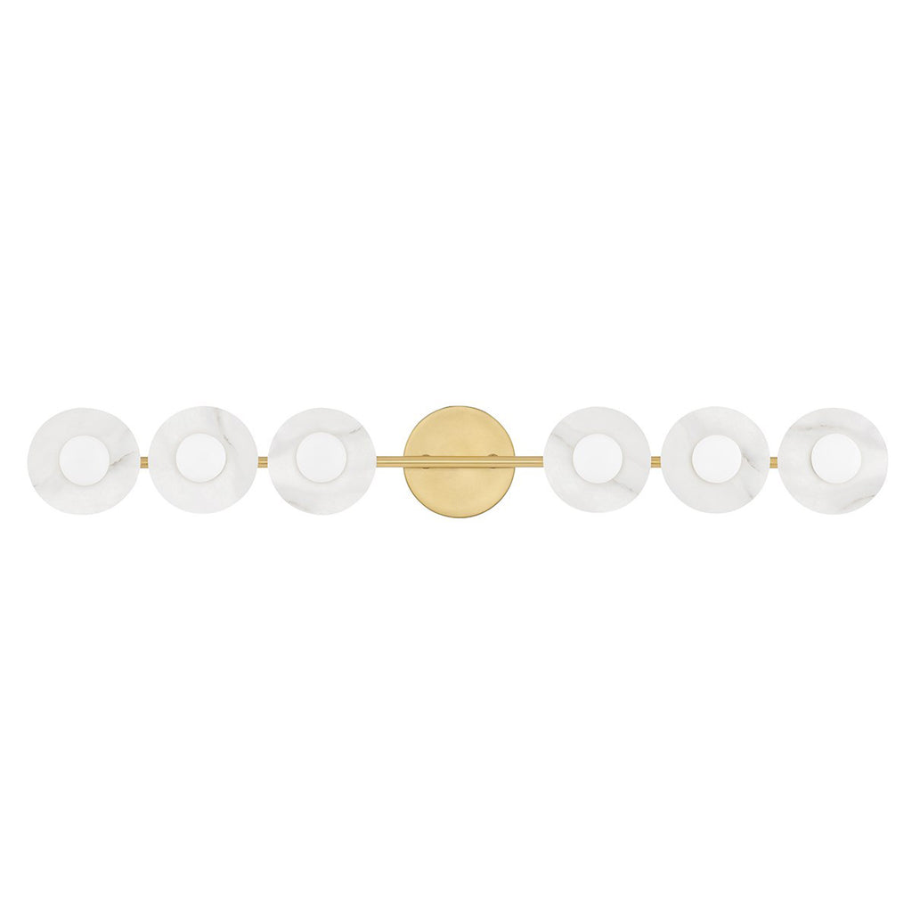 The Hudson Valley Elmont bath vanity light introduces serious elegance into a simple design by setting alabaster discs as foils against each diffuser, Elmont’s accents of stone infuse drama into the bath.
