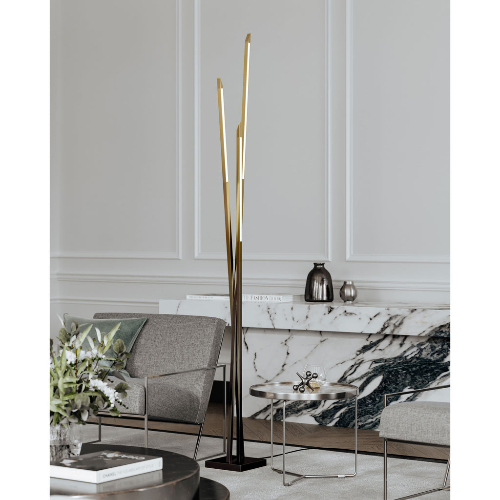 Renowned for built-to-last quality with a timeless feel, Hudson Valley offers a modern lighting collection with elegant touches, recalling vintage inspiration. Bring the modern elegance and save space while diffusing light higher in your living room or office space with a Hudson Valley floor lamp. Angled pieces of gradient brass in various sizes intersect for a look that is strong and unexpected. Dedicated LEDs reflect off the ombre finish brass creating a beautiful lighting effect that changes as the gradient goes from light to dark.