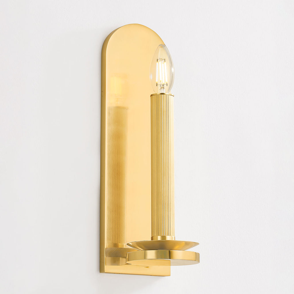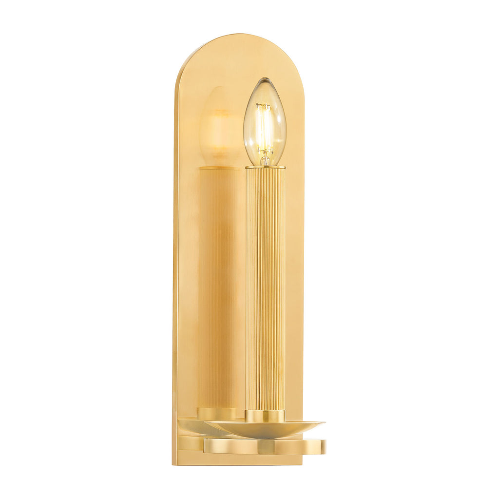 Renowned for built-to-last quality with a timeless feel, Hudson Valley offers a modern lighting collection with elegant touches, recalling vintage inspiration. Drawing from 1930s designs, Lindenhurst is a testament to the strength of simplicity. It features an arched Aged Brass backplate mounted with a matching candlelight. The delicate fluting on the candle sleeve enhances the vintage feel of this versatile sconce.
